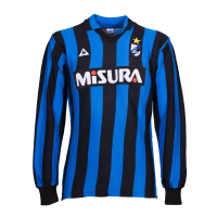 Sul fronte: sponsor commerciale Misura in flock, sponsor tecnico e stemma del club sormontato da una stella cuciti.