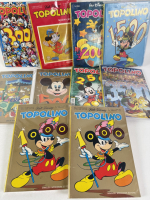 Lotto composto da dieci albi di Topolino Libretto, NN. 605 (senza gadget), 577, 500, 1000 2x, 1500, 2000 blisterato, 2500, 3000, 3500. In eccellenti condizioni.