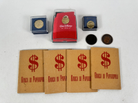 Lotto composto da 4 monete della Banca di Paperopoli e 5 monete di cui tre con custodia. Buone condizioni.