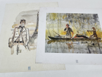 Lotto composto da due litografie: 1. Laboratorio del fumetto, cm 22x32. 2. CM, cm 28x35. Ciascuna in ottime condizioni.
