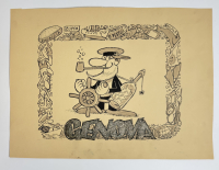 illustrazione a pennarello blu su carta. Firmata. Buone condizioni.