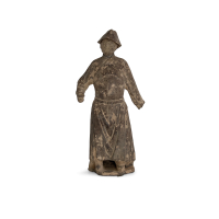 Terracotta, modellata in forma di uomo, la zona inferiore delle gambe mancante, le braccia probabilmente in origine in legno.