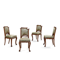 Legno intagliato a motivi di gusto cinese, tappezzeria in seta a fondo verde con decoro policromo di paesaggi di stile cineseria.