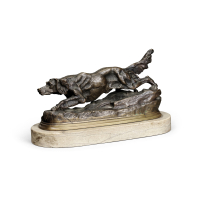 Bronzo a patina scura, su base ovale in marmo.