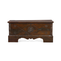 Noce, rettangolare, il fronte intagliato con decoro geometrico, su piede a mensola.