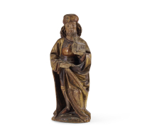 Legno intagliato, scolpito e parzialmente dorato.