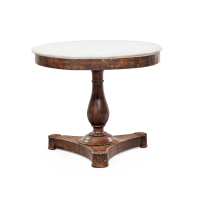 Noce, il piano circolare in marmo bianco, fusto a balaustro e base tripode sagomata.