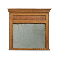 Ciliegio intagliato, decoro intagliato con motivo a ovoli e perline dorate, lo specchio coevo.