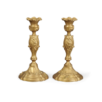 COPPIA DI CANDELIERI IN BRONZO DORATO