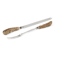 Acciaio e osso intagliato, composto da coltello e forchettone.