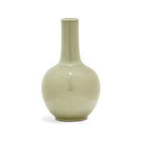 Porcellana, l'esterno rivestito di invetriatura céladon sopra un leggero intaglio con decoro floreale.