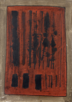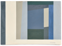 Firmato e datato al recto in basso a destra, al verso sulla tela dedicato con data 'Suna 25 – 1 – 971', sul telaio etichetta/scheda del 5° Premio Internazionale di pittura 'Campione d'Italia' 1966, timbro con numero di inventario della
