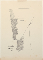 Lotto completato da: Pompeo Borra, Autoritratto, 1967, china e pennarello su carta, 33,00 x 24,00 cm.