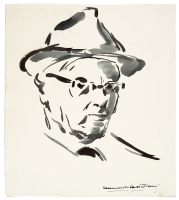 Lotto completato da: Giuseppe Cesetti, autoritratto, china su carta,