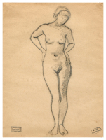 Lotto completato da: Assen Peikov, autoritratto, matita e carboncino su carta, 40,00 x 30,00 cm, firmato e datato al recto in