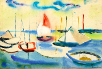 Firmato al recto in basso a sinistra, al verso firmato, titolato, datato ed etichetta/scheda e timbri della Galleria d'arte La Lanterna, Alessandria.