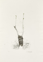 Assieme: Romano Campagnoli, L'innesto, 1974, acquaforte su zinco su carta rosaspina, ed. 27/100, 70,00 x 50,00 cm, firmato al recto in basso