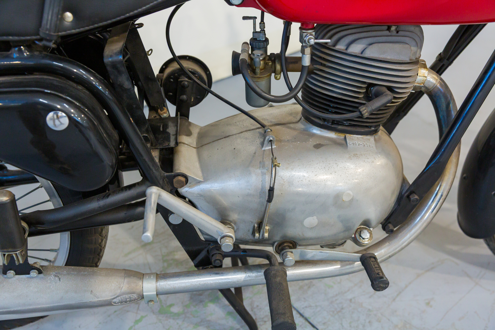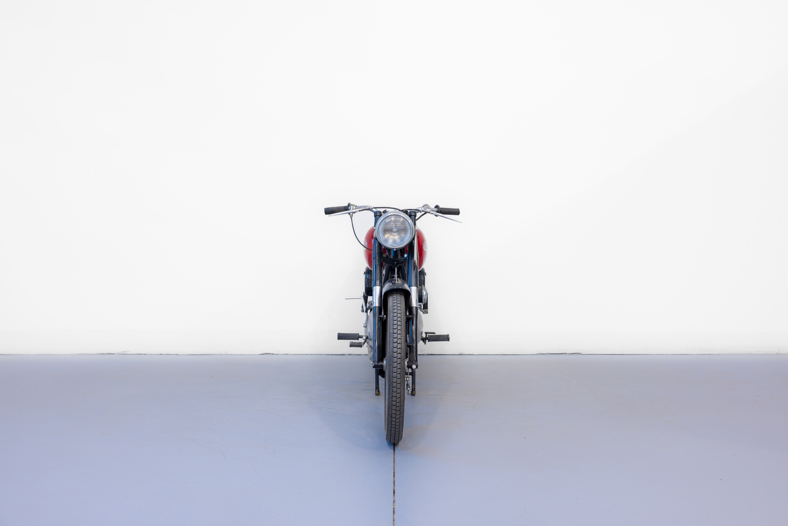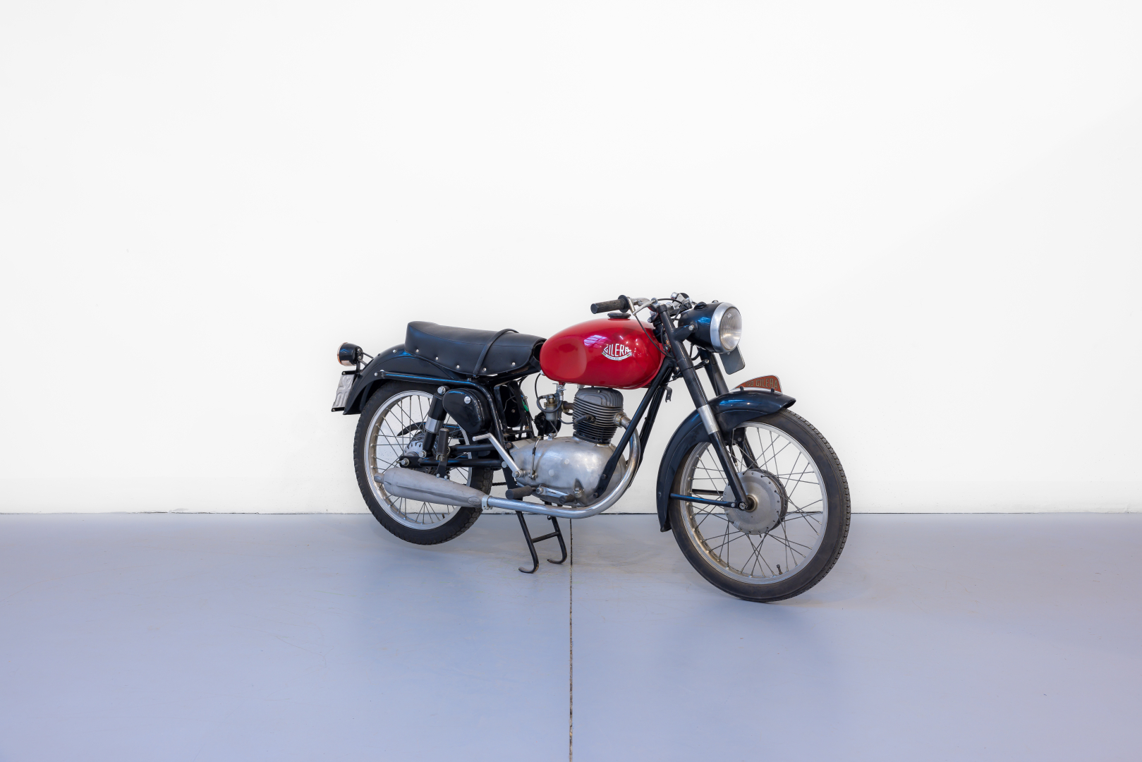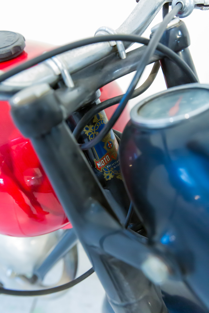 Nell’immediato dopoguerra era fortissima la domanda di motorizzazioni di tutti le tipologie e le case motociclistiche non si fecero sfuggire questa importante occasione. Gilera scese in campo dapprima con una 125, monocilindrica a 4 tempi, con forcella stampata ed ammortizzatori posteriori a compasso, pratica, economica, affidabile, assai gradita all’utenza, al punto tale da convincere i vertici aziendali a presentare, nel 1952, il modello 150 cc– ottenuto maggiorando l’alesaggio del motore 125cc da 54 a 60mm che riscosse un buon successo commerciale anche grazie agli aggiornamenti delle sospensioni, dotandola di forcella telescopica all’anteriore ed al posteriore di un forcellone oscillante con una coppia di ammortizzatori teleidraulici. Completa, in buono stato di conservazione. Si consiglia un controllo generale prima dell’utilizzo.