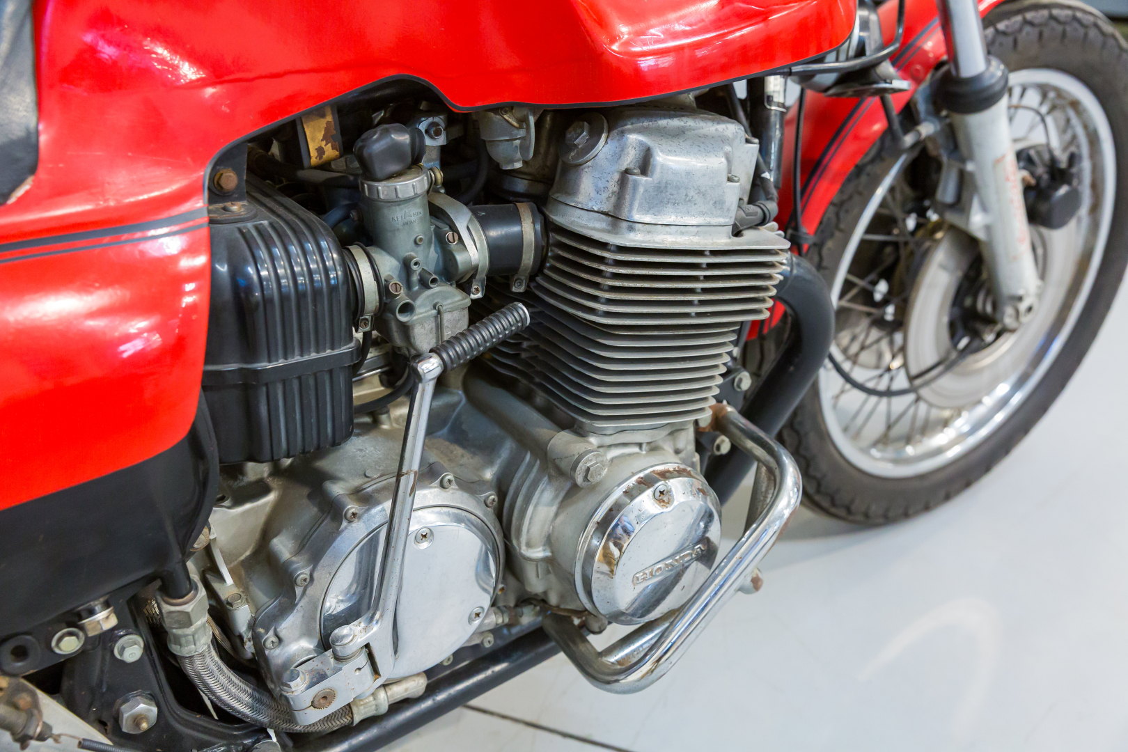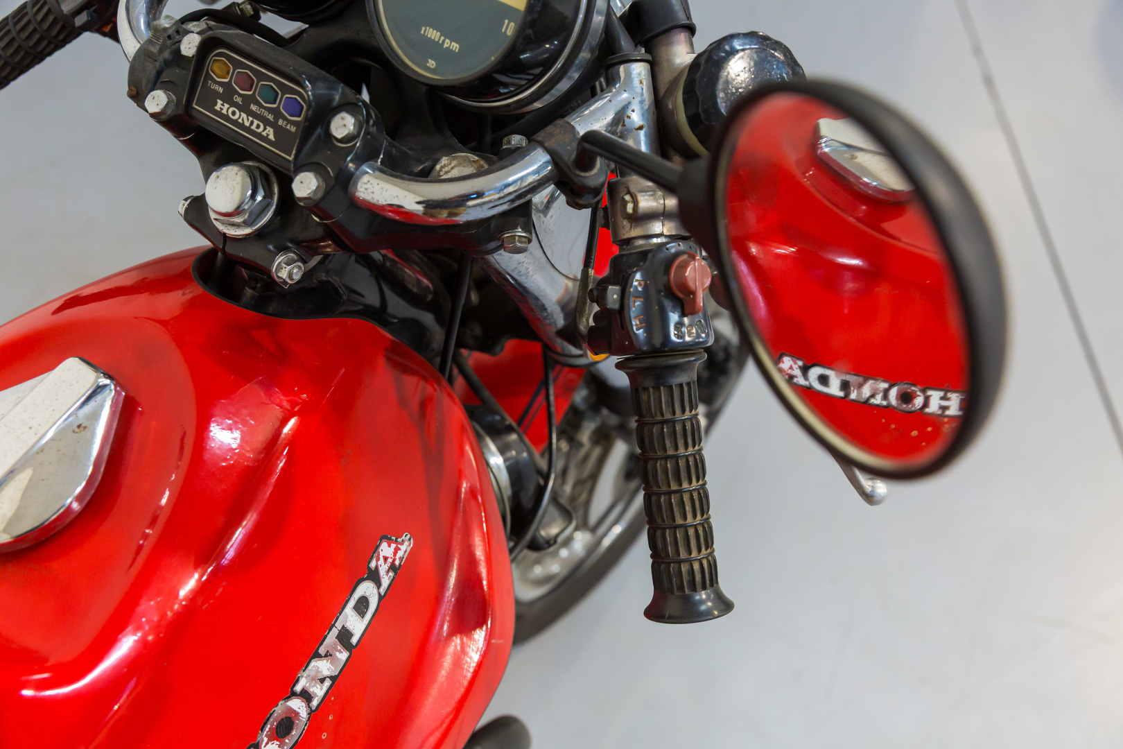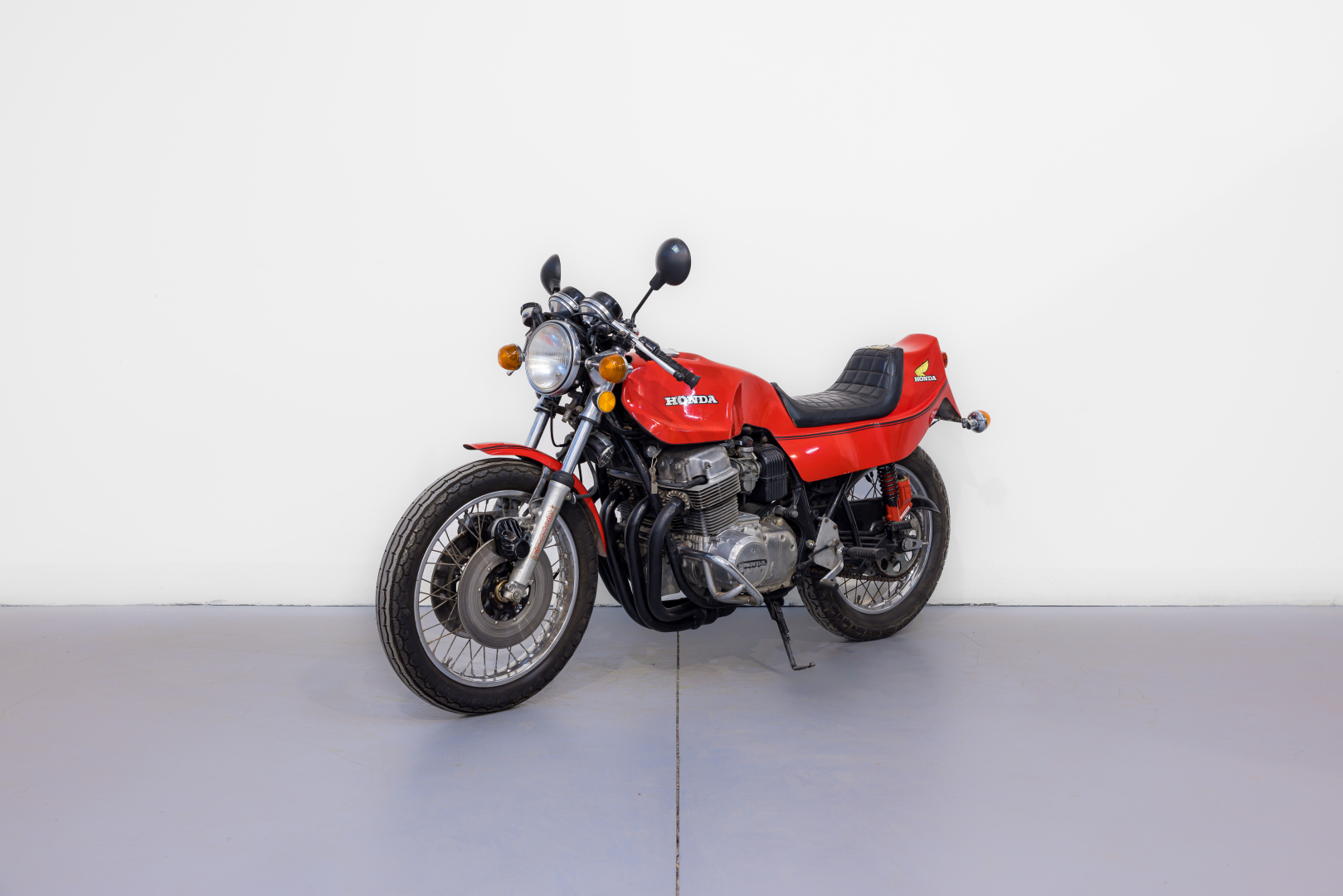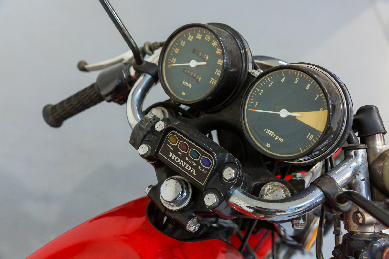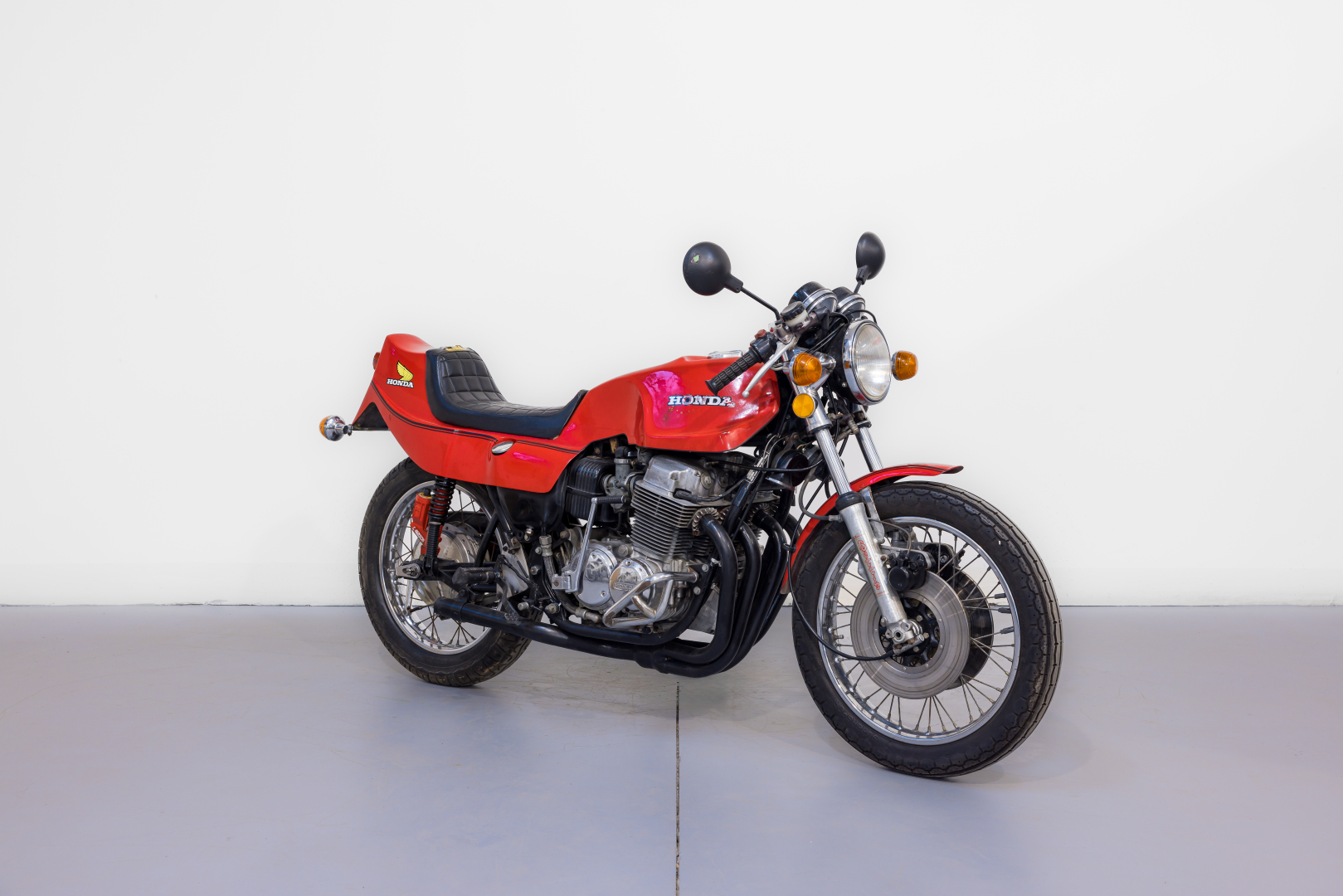 La Honda CB 750 Four, presentata al Salone di Tokyo nel 1968, può essere considerata una delle pietre miliari nel settore delle moto di serie ad elevate prestazioni. Il propulsore quadricilindrico trasversale a 4 tempi, con cilindrata di 750cc e distribuzione monoalbero a camme in testa ed una potenza accreditata di ben 69 CV a 8000 giri/minuto era un autentico punto di riferimento prestazionale e per la sua grande affidabilità. Il modello proposto è un K2, dotato di due freni a disco anteriori ed il posteriore a tamburo, manubrio sportivo, pedane arretrate e monoscocca sella-serbatoio in vetroresina e scarico sportivo quattro in uno non originali in perfetto stile Cafè-Racer. Conservato, buone condizioni. Uso ricambi.