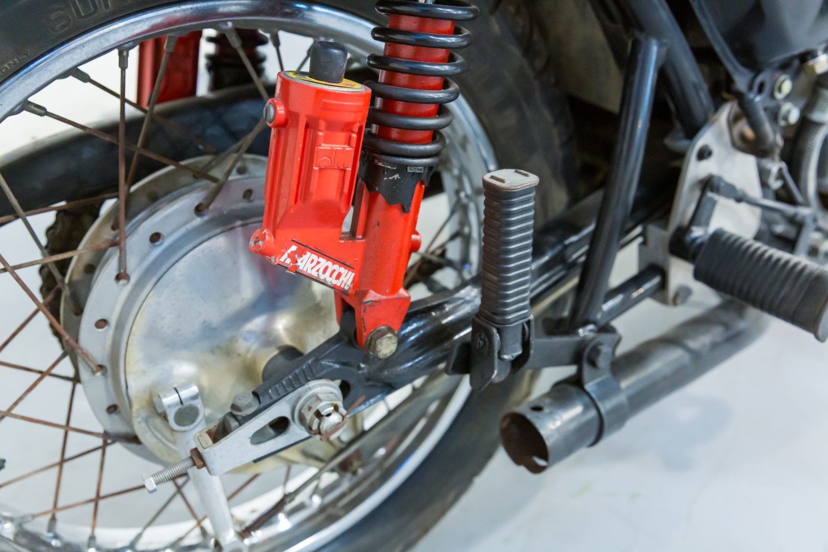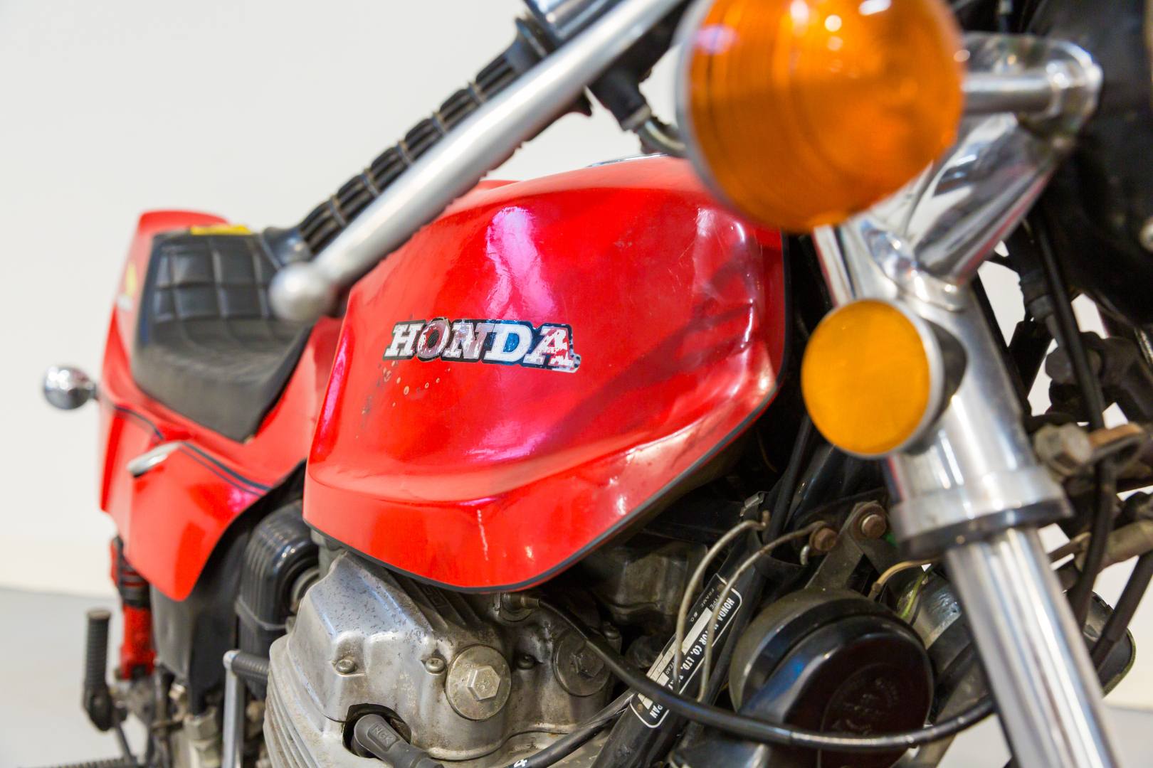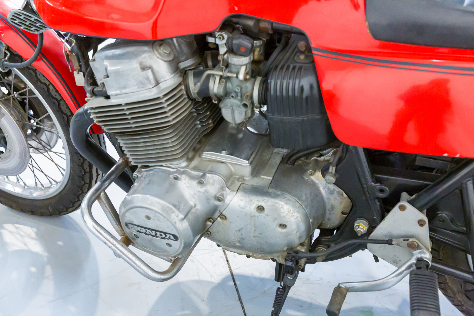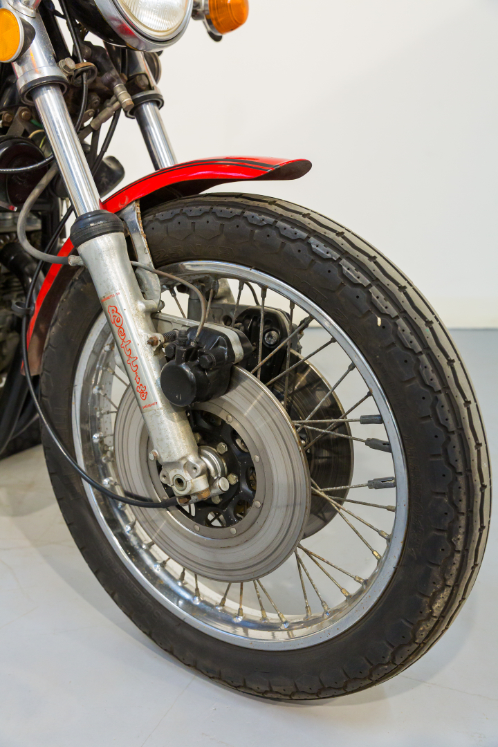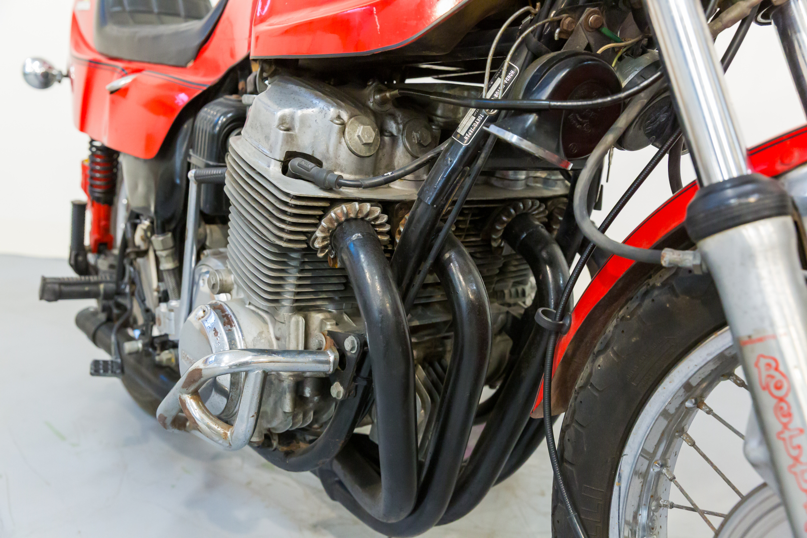 La Honda CB 750 Four, presentata al Salone di Tokyo nel 1968, può essere considerata una delle pietre miliari nel settore delle moto di serie ad elevate prestazioni. Il propulsore quadricilindrico trasversale a 4 tempi, con cilindrata di 750cc e distribuzione monoalbero a camme in testa ed una potenza accreditata di ben 69 CV a 8000 giri/minuto era un autentico punto di riferimento prestazionale e per la sua grande affidabilità. Il modello proposto è un K2, dotato di due freni a disco anteriori ed il posteriore a tamburo, manubrio sportivo, pedane arretrate e monoscocca sella-serbatoio in vetroresina e scarico sportivo quattro in uno non originali in perfetto stile Cafè-Racer. Conservato, buone condizioni. Uso ricambi.