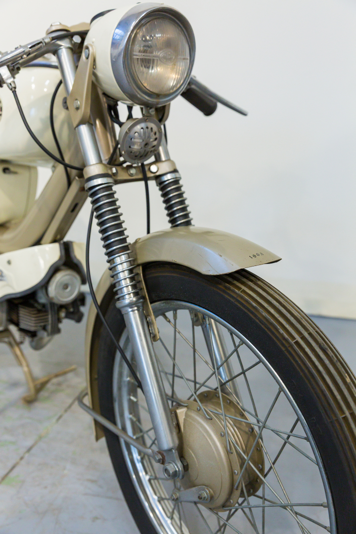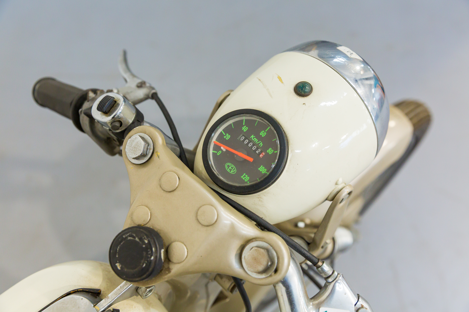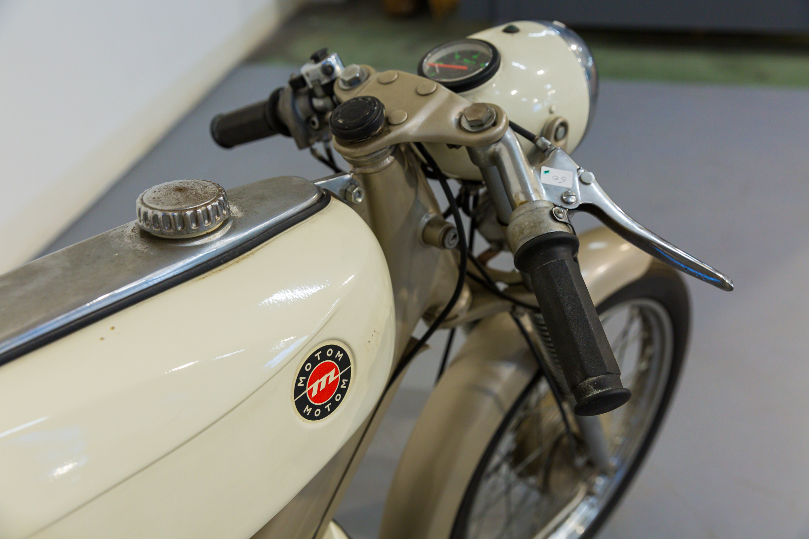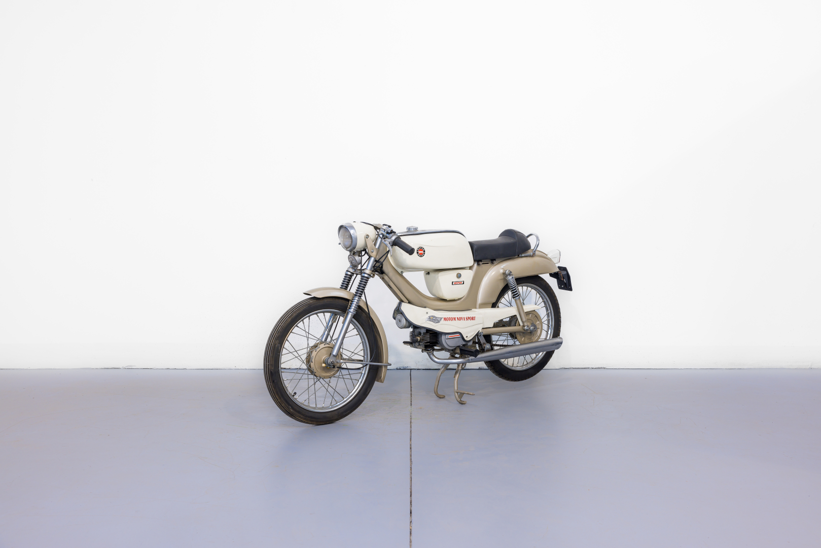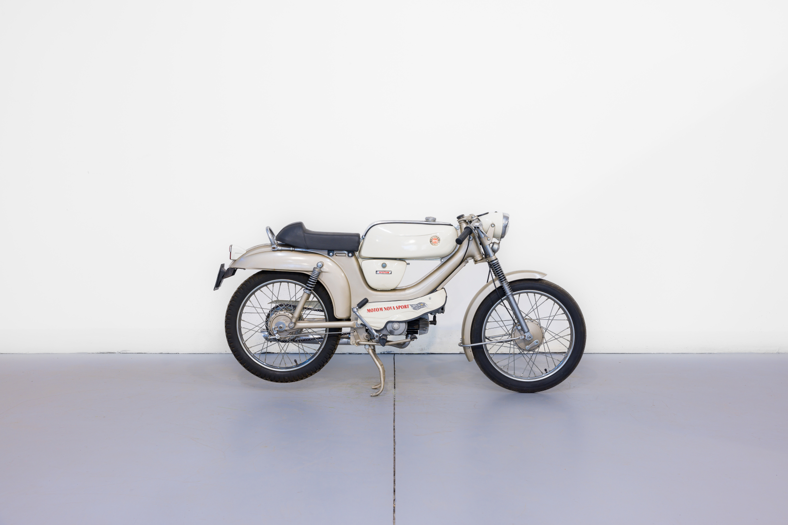 La Motom viene fondata nel 1945 a Milano, per opera della famiglia De Angeli Frua spinta dalla volontà di diversificare le proposte produttive oltre agli impianti di lavorazione tessile. Dopo la serie di ciclomotori a 4 tempi con telaio in lamiera stampata che riscossero un grandissimo successo commerciale, verso la fine degli anni ‘60, per restare al passo con le richieste del mercato, presentò un ciclomotore denominato Nova 48 Sport, dotato di motore monocilindrico a 2 tempi con cilindro disposto orizzontalmente con cambio a tre rapporti comandato a manopola. Molto rara. Conservato, completo, in ottime condizioni. Si consiglia un controllo generale prima dell’utilizzo.