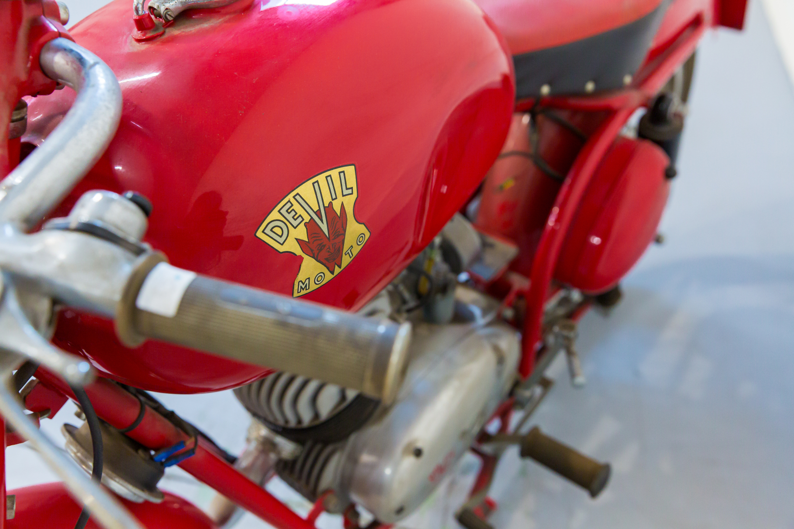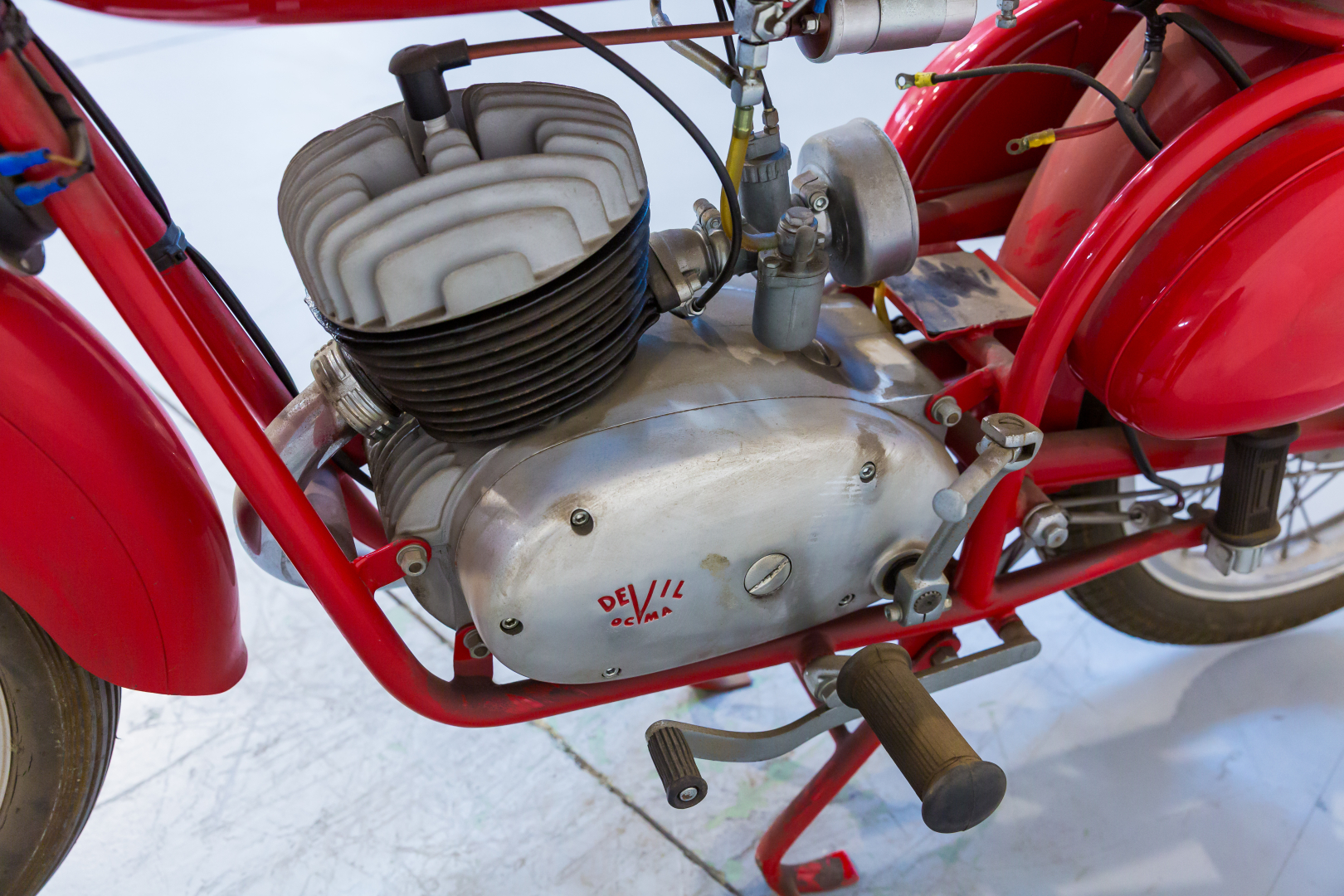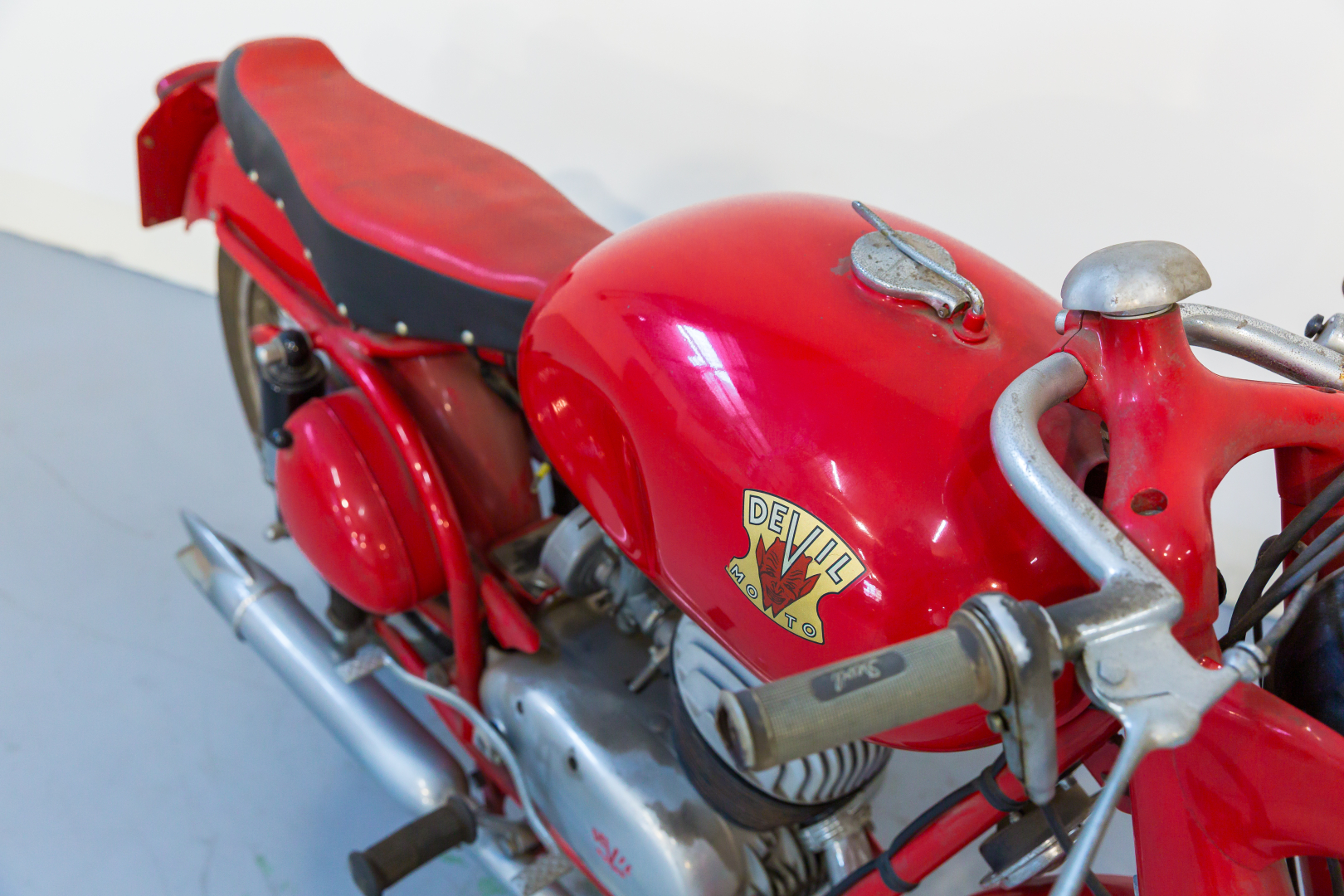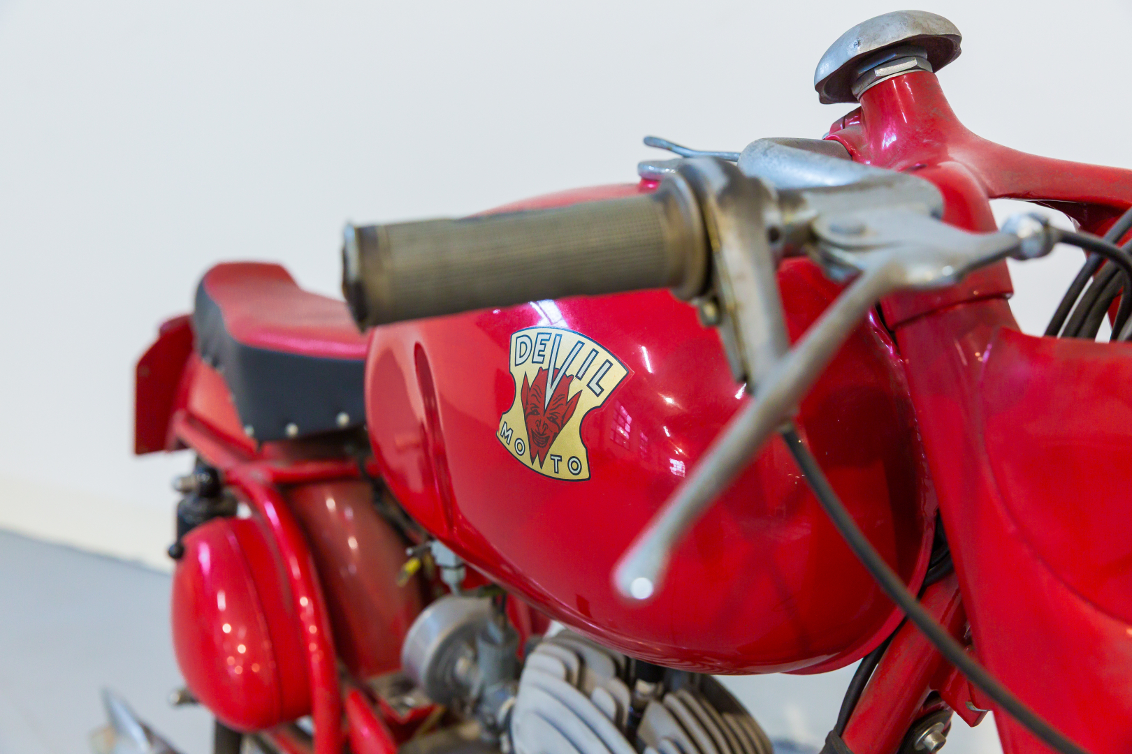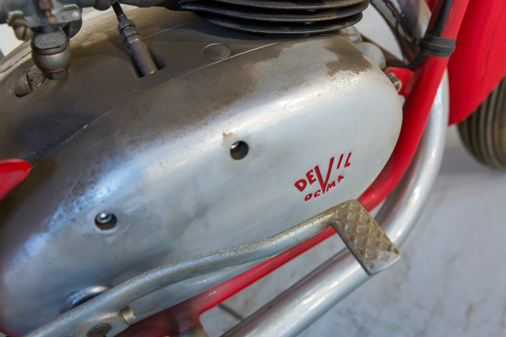 La OCMA, azienda metalmeccanica di Fiorano al Serio in provincia di Bergamo, specializzata in lavorazioni meccaniche di precisione, nel 1953 entra nel settore motociclistico con il proprio marchio Devil; Il modello di punta è motorizzato da un monocilindrico a 2 tempi di 160 cc progettato dall’Ing. Boninsegna. In buone condizioni, si presta ad un progetto di restauro. Si consiglia un controllo generale prima dell’utilizzo.