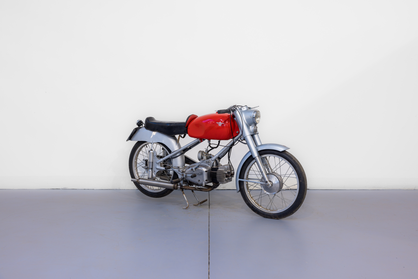 La Moto Rumi, azienda bergamasca fondata negli anni ‘50 da Donnino Rumi, grazie alla componentistica raffinata ed alle soluzioni tecniche d’avanguardia divenne un marchio famoso per le sue motoleggere dalle prestazioni strabilianti, dotate di sibilanti motori bicilindrici a due tempi con i cilindri disposti orizzontalmente. I modelli di maggior successo di questo marchio furono le 125 nelle versioni Turismo e Sport, mono e bi carburatore, oltre alle versioni da corsa che trionfarono in moltissime competizioni. Lo Sport mono carburatore proposto è completo, in ottimo stato. Si consiglia un controllo generale prima dell’utilizzo.