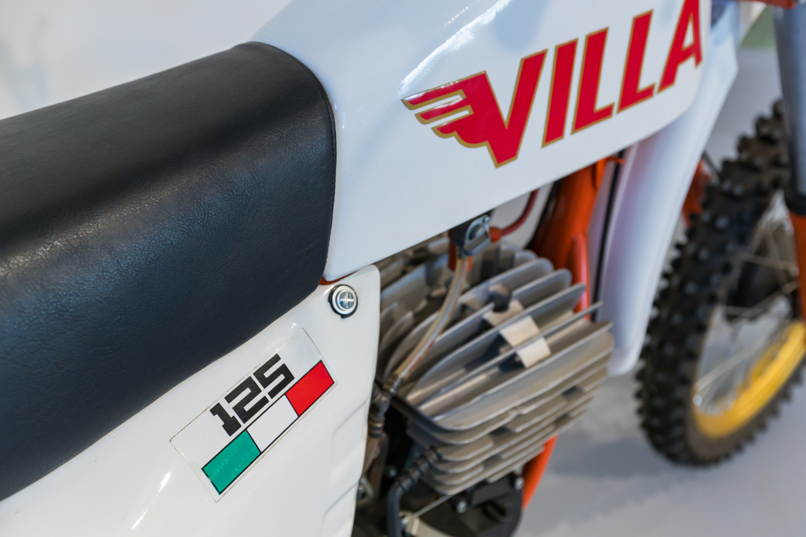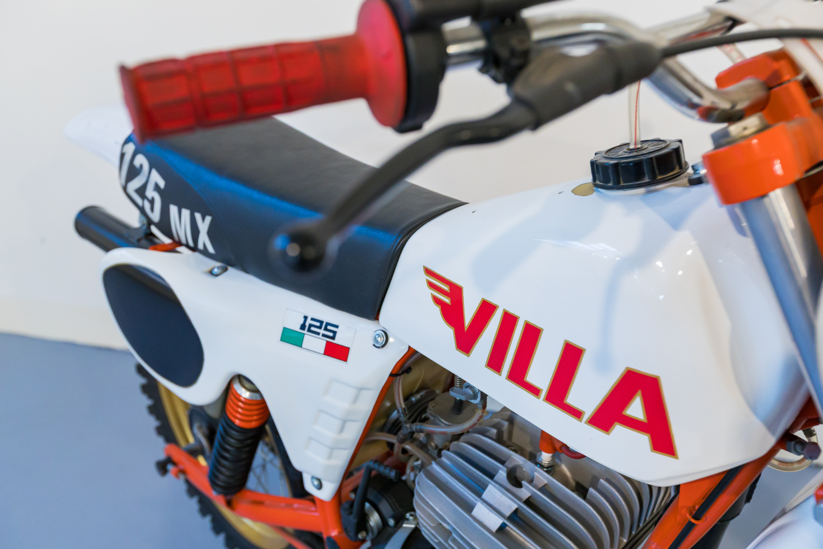 Gli anni ‘80, sono importanti per lo sviluppo del Motocross, specialmente in Italia, con l’affermazione di molti marchi nostrani e la Villa è tra i protagonisti in tutte le classi, partendo dalla 125, cilindrata propedeutica ed autentica fucina di futuri campioni. Il modello denominato 125 MX è dotato di un brillante motore monocilindrico a 2 tempi di 125cc raffreddato ad aria con testa ad alettatura radiale, telaio a doppia culla in acciaio al cromo molibdeno. Conservata in ottime condizioni, ottimo affare per acquistare una delle ottavo di litro da Cross maggiormente ricercate e competitive. Si consiglia un controllo generale prima dell’utilizzo.