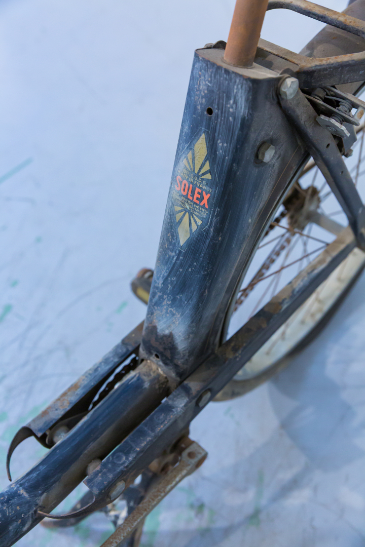Il Velosolex è stato tra i prodotti più rappresentativi della spinta generata dalla necessita di muoversi delle persone nell’immediato dopoguerra, prodotto dall’Azienda francese Solex in circa sei milioni di esemplari. Mezzo di trasporto economico, consistente in un motore ausiliario, monocilindrico a due tempi da 49 cc ed accreditato di 0,795CV, da applicare alle biciclette in posizione anteriore ed il cui moto veniva trasferito alla ruota attraverso un rullo. Un simbolo della mobilità di massa del primo periodo post bellico. Conservato, condizioni discrete. Si consiglia un controllo generale prima dell’utilizzo.
