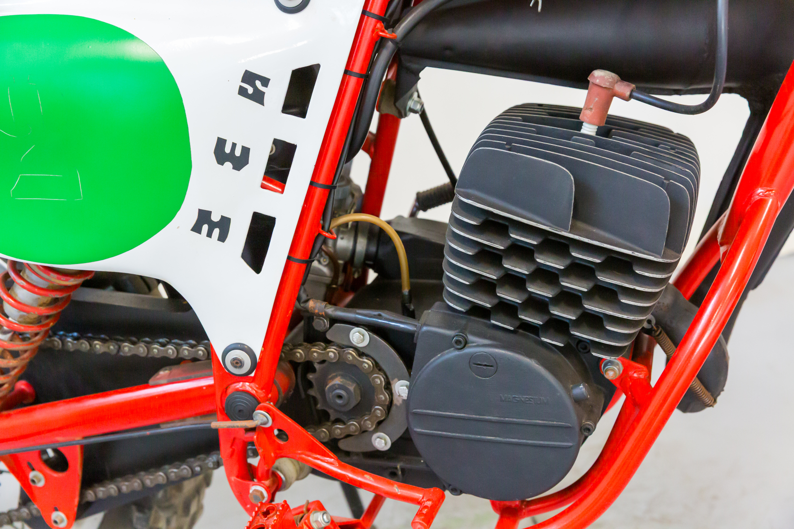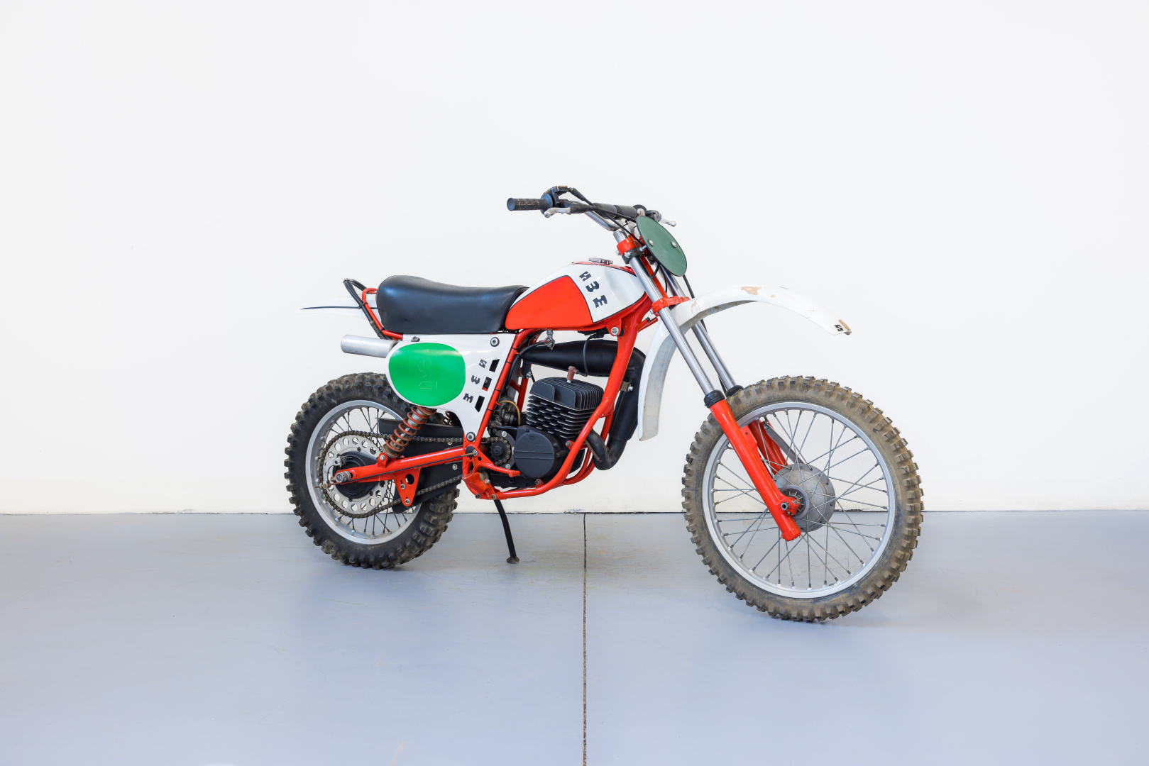 Famoso marchio motociclistico italiano la SWM di Rivolta d’Adda in provincia di Milano si distinse particolarmente per i suoi modelli da fuoristrada professionale dapprima dotati di motori Sachs e successivamente Rotax con un apporto tecnico proprio sempre più esteso. Il modello da cross denominato MC 125 venne presentato nel 1978 ed era equipaggiato dal propulsore Rotax monocilindrico a 2 tempi ed ammissione a disco rotante, telaio tubolare in acciaio a doppia culla e sospensioni al top dell’epoca ne facevano una delle moto più ambite dai sedicenni. Completa, in ottime condizioni. Si consiglia un controllo generale prima dell’utilizzo.