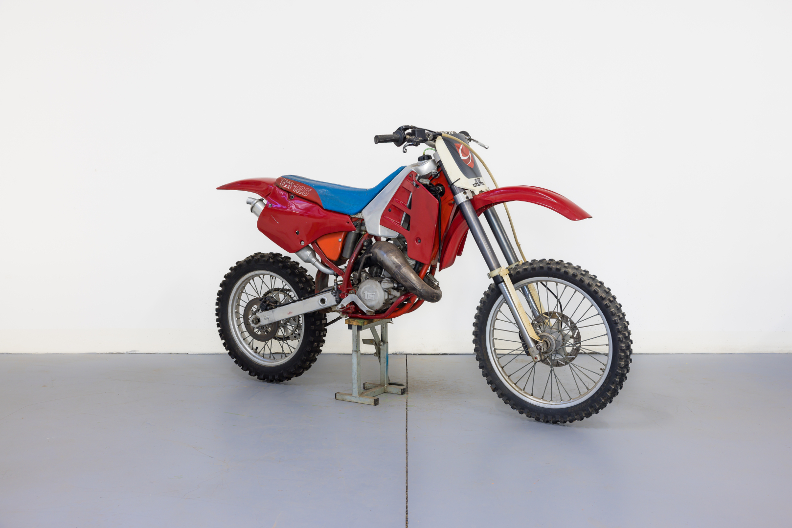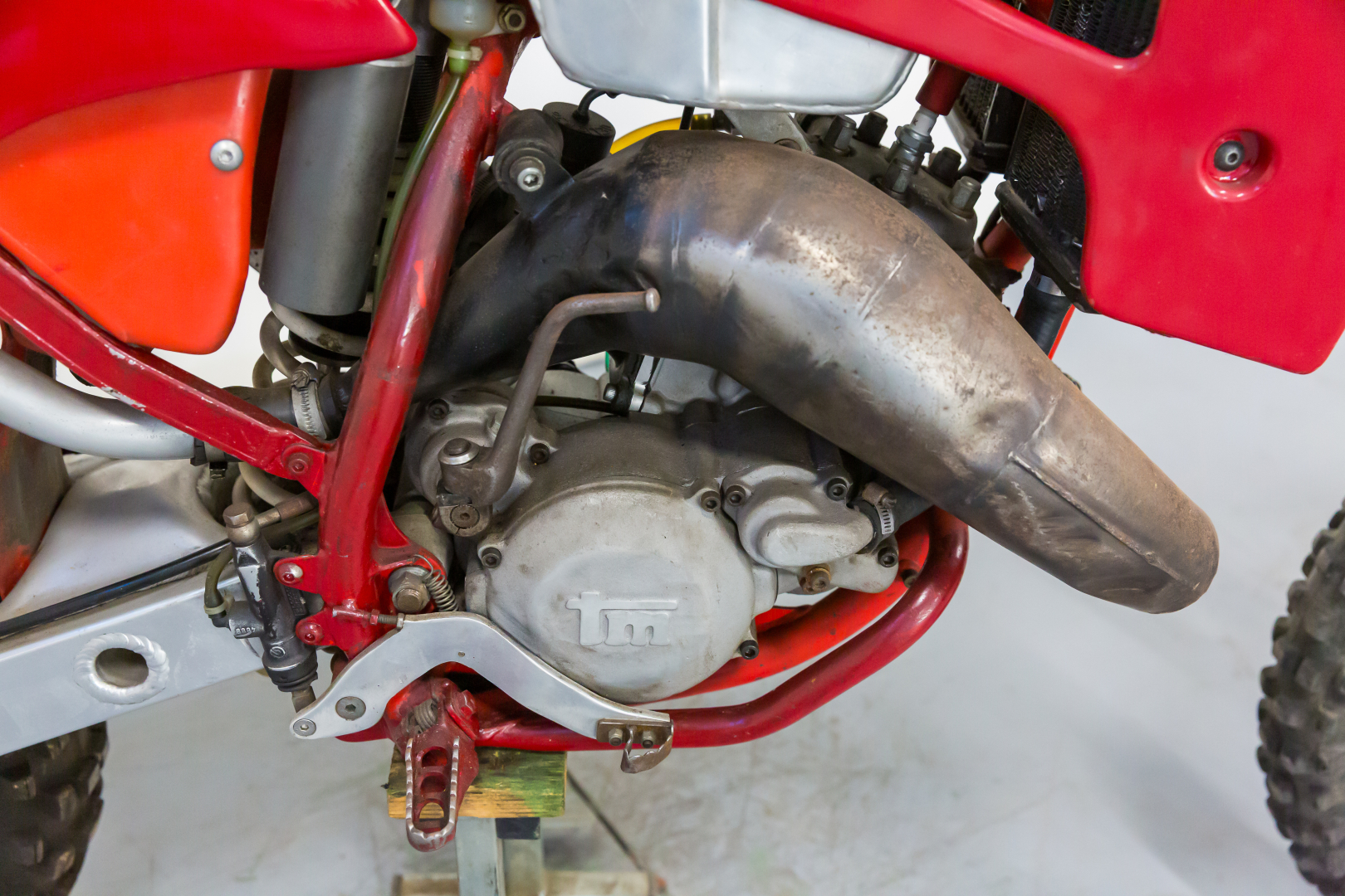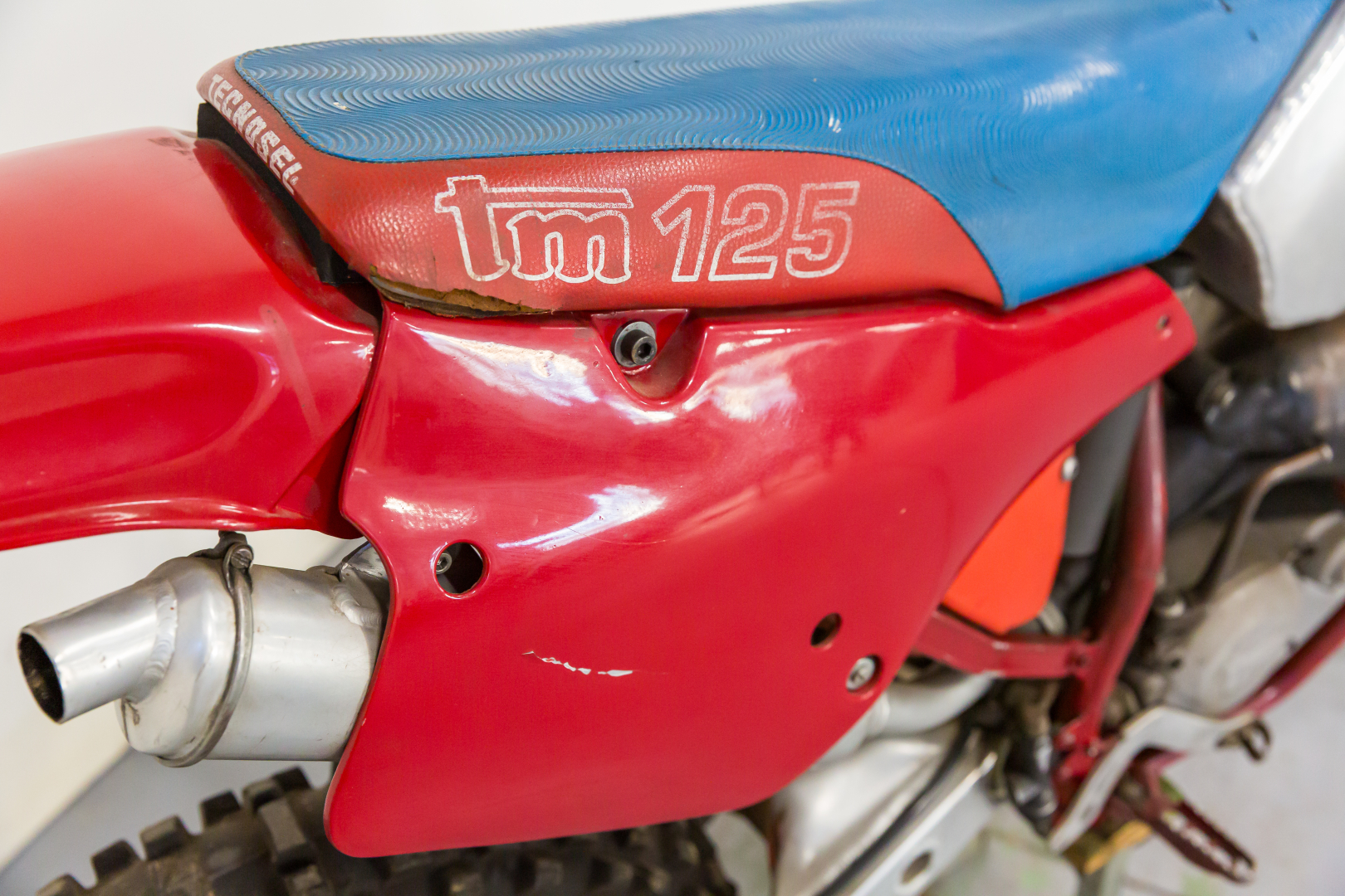 Fondata nel 1977 a Pesaro da Claudio Flenghi e Francesco Battistelli, la TM divenne ben presto un punto di riferimento nel moto cross che nei kart. La filosofia dell’azienda è da sempre quella di produrre tutto il possibile in proprio partendo dai progetti, questo ha condotto la factory pesarese alla conquista di 30 titoli iridati in 45 anni di attività. A livello di moto da cross le TM 125 furono ben presto il cavallo di battaglia dei giovani crossisti e di fatto monopolizzarono quasi totalmente le griglie di partenza dei vari campionati nazionali riservati alle ottavo di litro. La moto proposta è una MX del 1991, conservata, completa ed in buone condizioni. Si consiglia un controllo generale prima dell’utilizzo.
