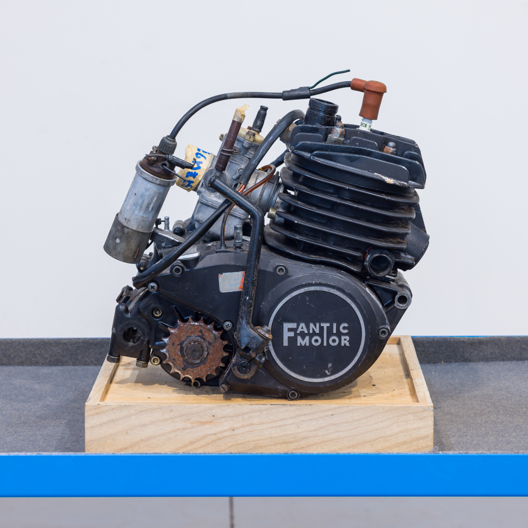 Motore Fantic 125 Strada, raffreddato a liquido, con carburatore e accensione completa. Si consiglia un controllo generale prima dell’utilizzo.