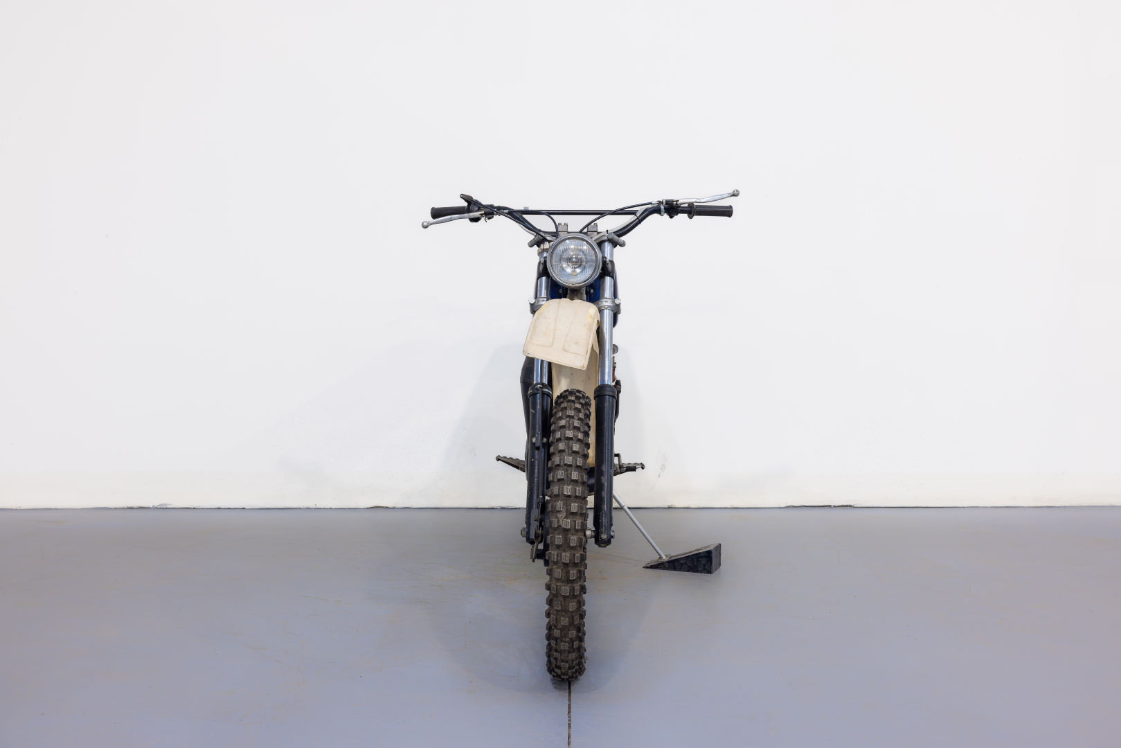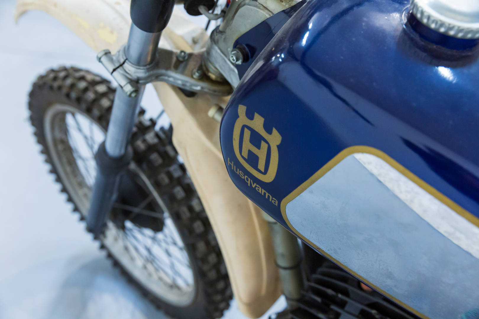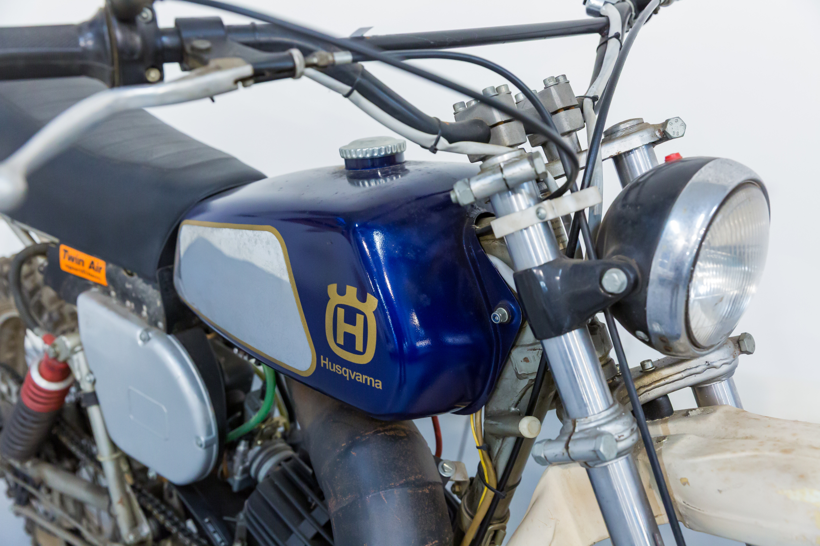 Sul finire degli anni‘70 la Husqvarna rinnova la propria gamma di moto fuoristrada con una serie di nuovi propulsori dotati di ammissione lamellare, grazie alla quale il motore acquista una particolare linearità nell’erogazione della potenza, a tutto vantaggio del piacere di guida. Telaio monotrave sdoppiato in tubi d’acciaio, forcella teleidraulica all’anteriore, forcellone con coppia di ammortizzatori a gas al posteriore, freni a tamburo, ruote con mozzi conici. Conservata, priva di alcuni componenti quali fianchetto sx e silenziatore. Si consiglia un controllo generale prima dell’utilizzo.