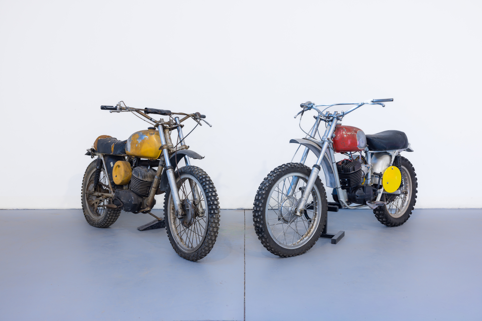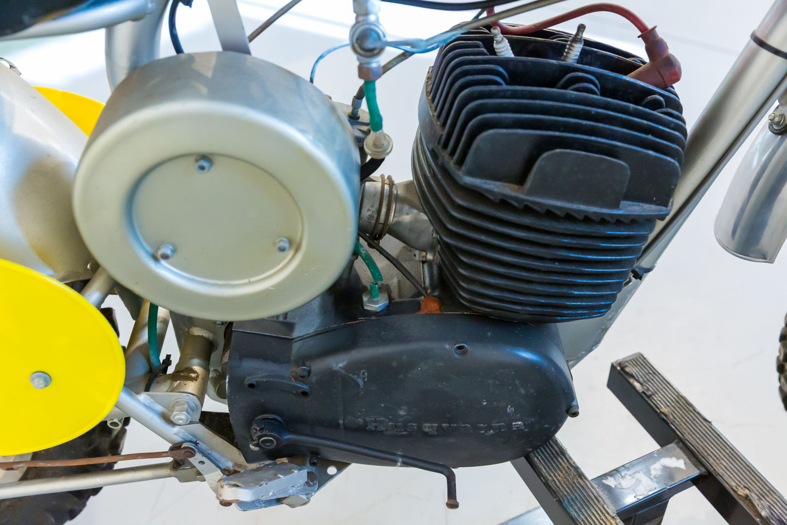 Lotto di due motociclette da fuoristrada Husqvarna, una da regolarità ed una da cross, con cambio a 8 velocità, una serie speciale equipaggiata con questo originale tipo di trasmissione sviluppata per competizioni di enduro nel deserto. Molto rare, ideali per uso ricambi.