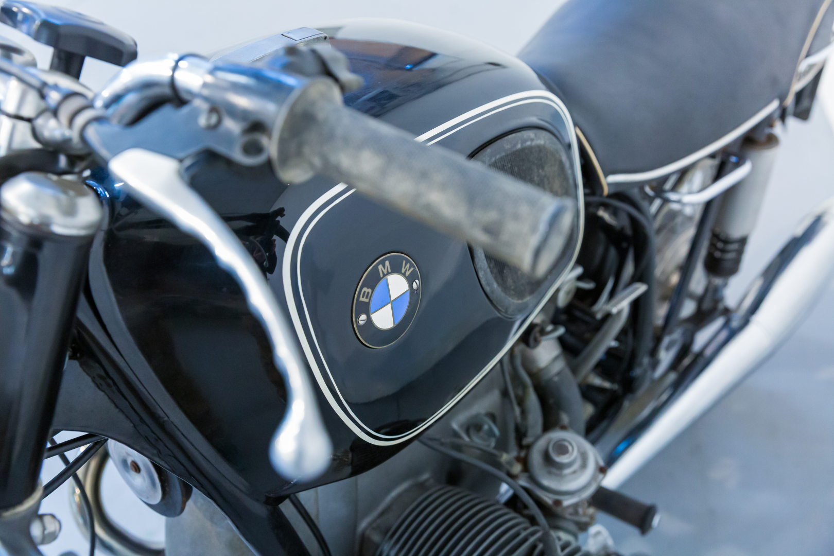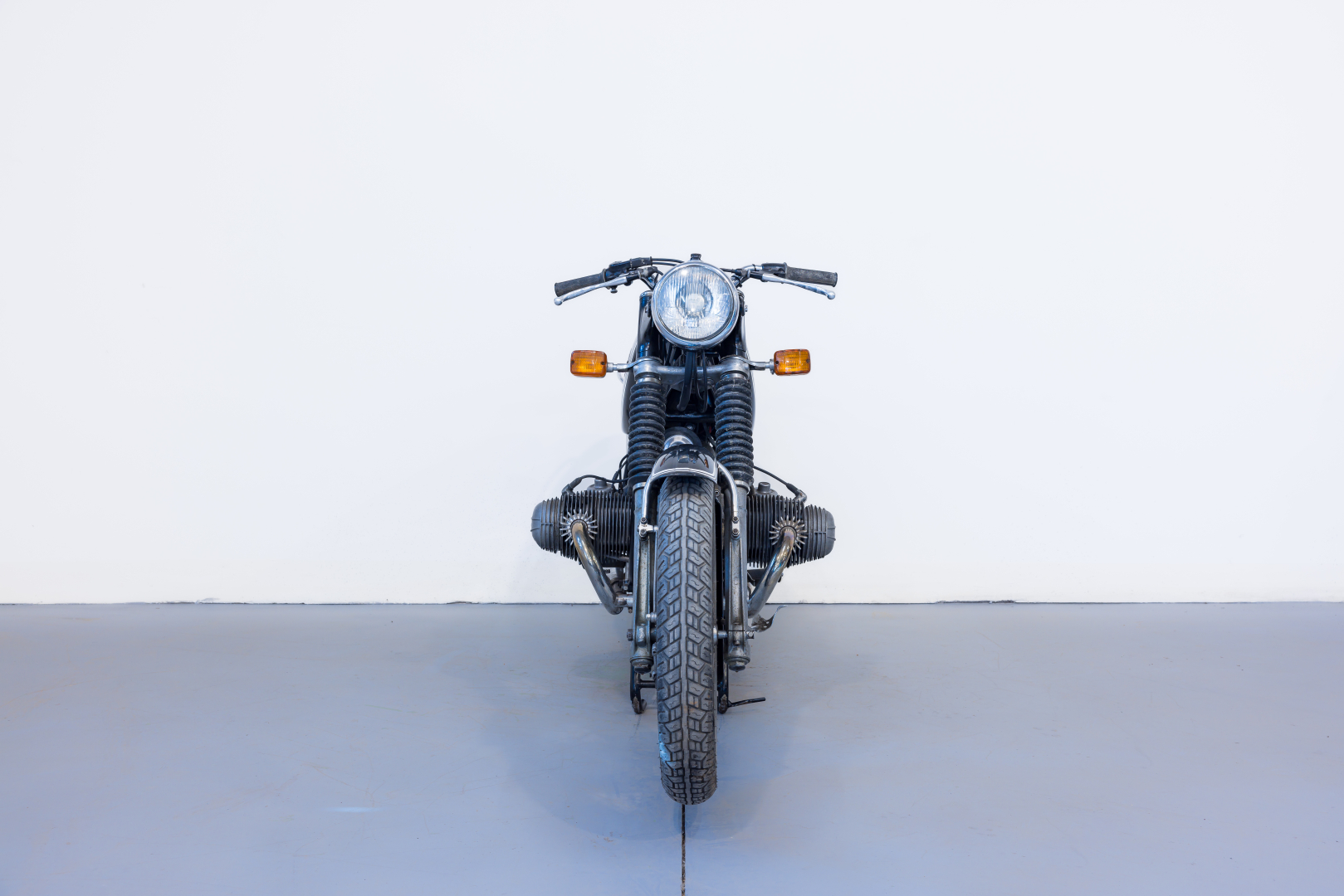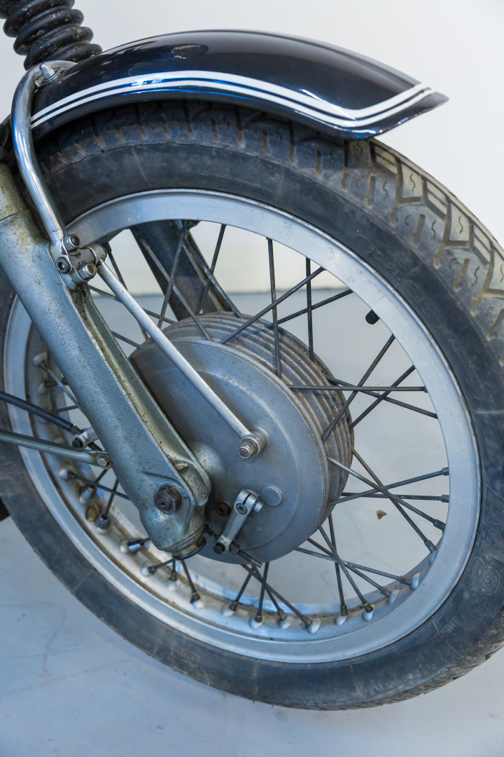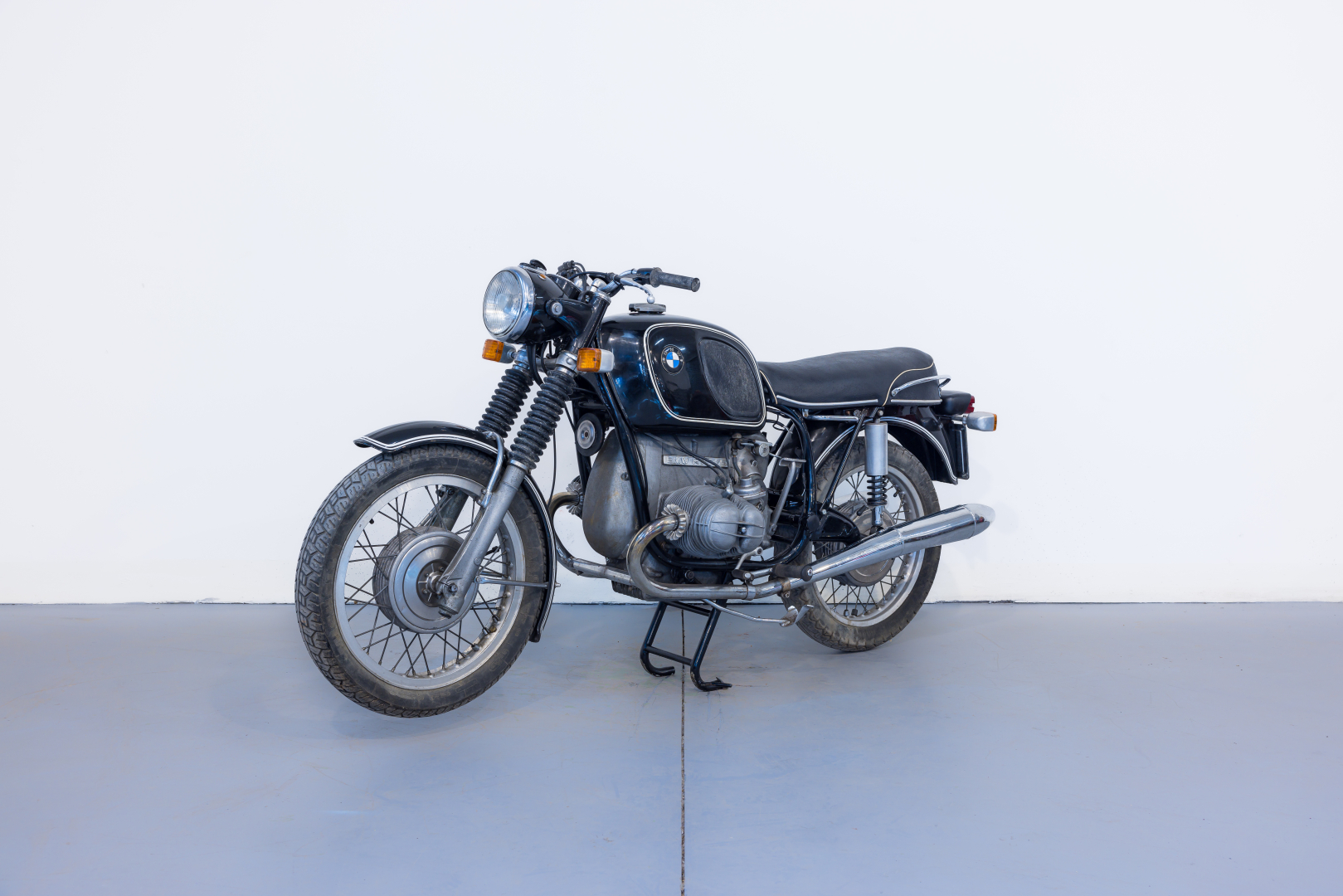 Presentata nel 1969 come evoluzione delle celebri R50/5 e R60/5 contava su un considerevole aumento prestazionale grazie all’aumento della cilindrata, mantenendo sempre il classico e collaudatissimo schema motoristico con il bicilindrico boxer e distribuzione ad aste e bilancieri. Anche il telaio subì alcune modifiche per sopportare al meglio l’aumento prestazionale. Completa, conservata, condizioni discrete. Si consiglia un controllo generale prima dell’utilizzo.