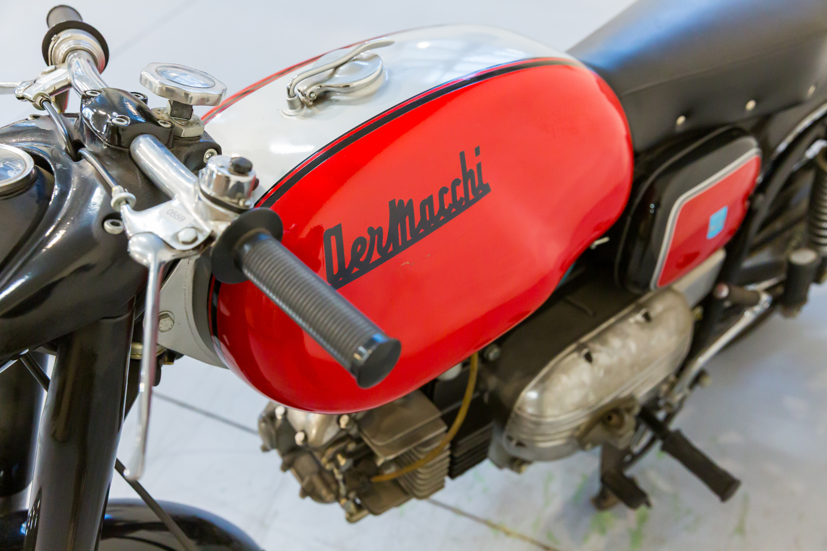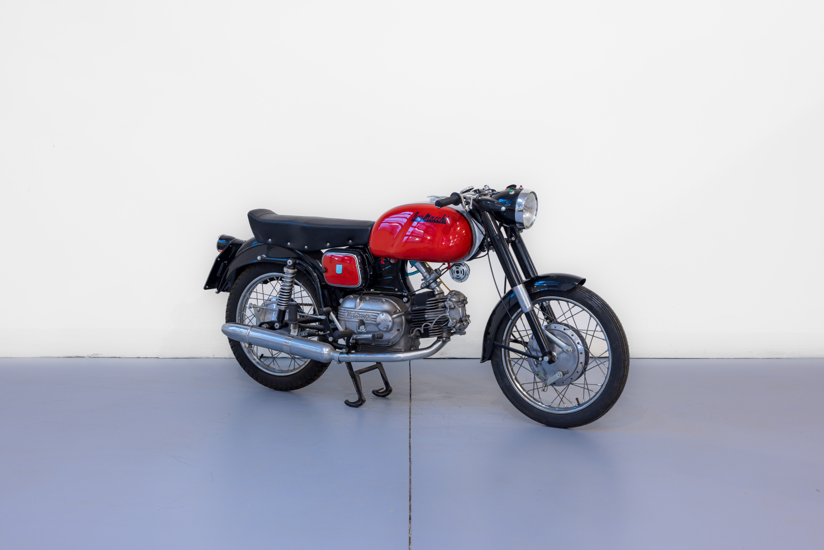 La Aermacchi, Azienda fondata da Giulio Macchi a Varese nel 1913, è stata un'azienda impegnata nella produzione aeronautica e di motociclette; i prodotti a due ruote della casa varesina si distinsero particolarmente sia per le loro caratteristiche tecniche e prestazionali che per quelle estetiche. Nel 1959 presenta il modello denominato Ala Verde, versione sportiva del modello Ala Azzurra, con il caratteristico motore monocilindrico a 4 tempi con distribuzione ad aste e bilancieri disposto orizzontalmente alimentato da un carburatore con diffusore da 24 mm. Il propulsore è montato a sbalzo sul classico telaio di tipo misto con tubi in acciaio e lamiera stampata, altra caratteristica Aermacchi. Completa, conservata in buone condizioni ed equipaggiata con alcuni componenti non originali. Si consiglia un controllo generale prima dell’utilizzo.