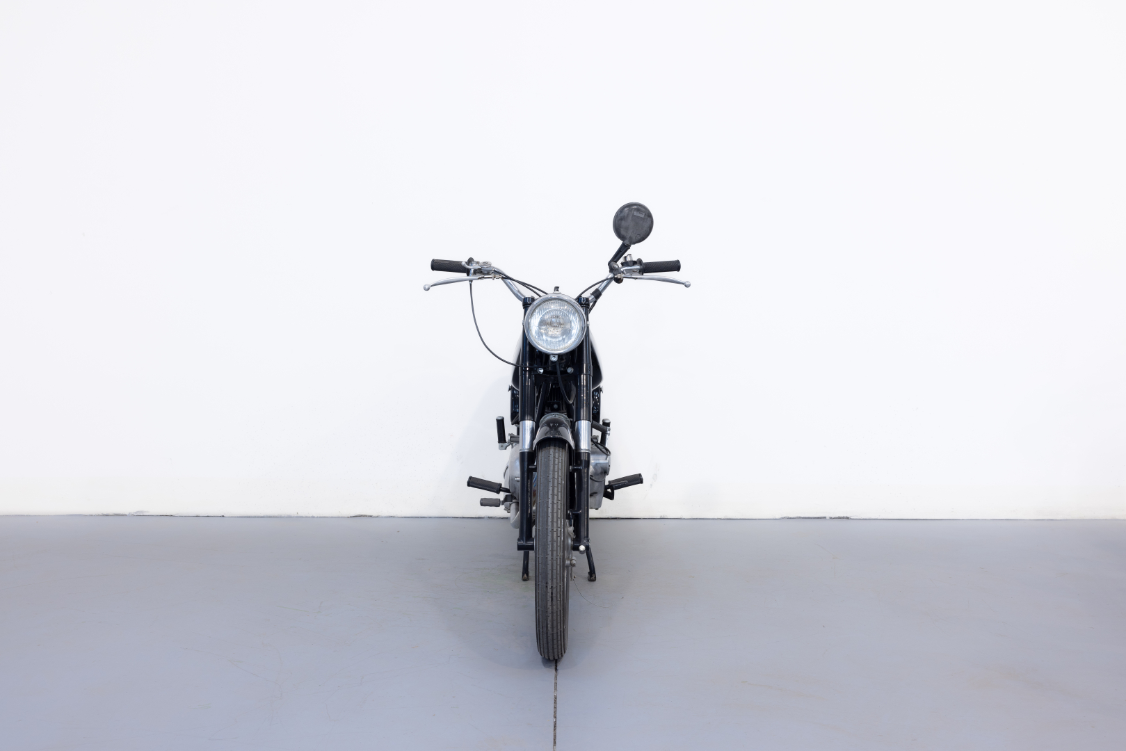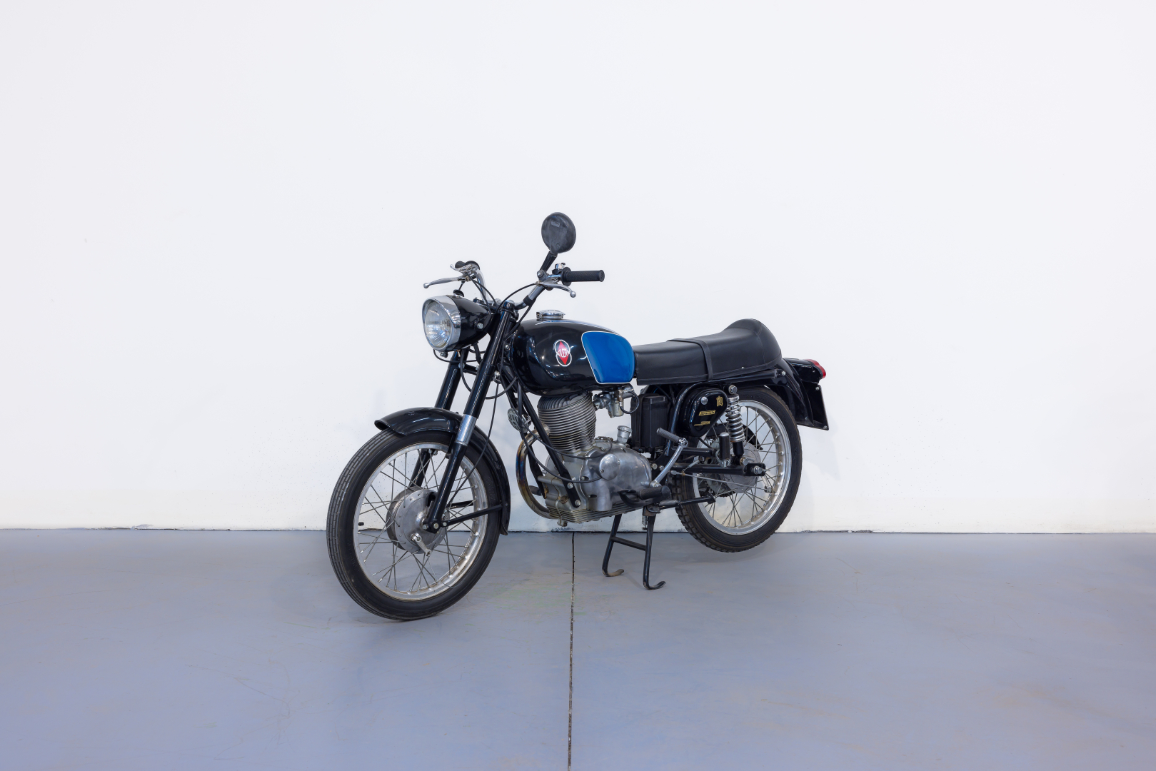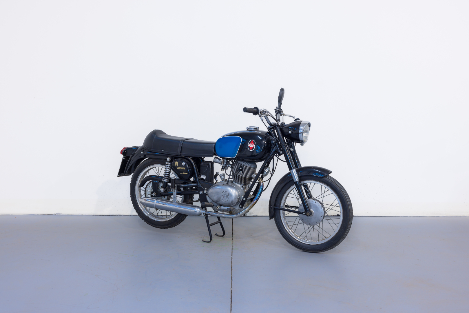Motocicletta prodotta dalla Gilera che, forte delle esperienze con motocicli di cilindrate importanti, immette sul mercato motociclette economiche ed affidabili, in particolare i modelli della serie 124, nelle versioni stradali e fuoristrada, dotati del brillante motore monocilindrico a 4 tempi con distribuzione ad aste e bilancieri, cilindrata 124 cc con cambio a 5 velocità, telaio a doppia culla aperta in tubi d’acciaio, sospensione anteriore con forcella teleidraulica, posteriore con forcellone oscillante e coppia di ammortizzatori idraulici. Il modello proposto è una Speciale Strada, prevalentemente destinato al mercato statunitense. Restaurata, completa, ottime condizioni. Iscritta ASI. Si consiglia un controllo generale prima dell’utilizzo.