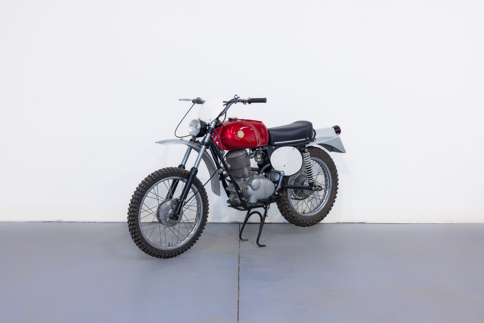 La Gilera 124 Regolarità è una moto da fuoristrada prodotta dallo storico e glorioso Marchio di Arcore che, sull’onda del successo ottenuto dal modello Giubileo Regolarità decise di proporre una motoleggera da vendere ai numerosi piloti privati che gareggiavano in fuoristrada; nel 1965 presenta i modelli 124 e 175 Regolarità, quest’ultimo ottenuto aumentando l’alesaggio a 60 mm e la corsa a 61mm del robusto motore monocilindrico a 4 tempi con distribuzione ad aste e bilancieri e cambio a cinque rapporti con componentistica di assoluto rilievo come le forcelle e gli ammortizzatori Ceriani. La robustezza del motore, unita a consumi davvero contenuti ne fecero un mezzo largamente utilizzabile sulle strade di tutti i giorni per poi essere agevolmente trasformato in moto da competizione. Restaurata, completa, in ottime condizioni. Iscritta ASI. Si consiglia un controllo generale prima dell’utilizzo.