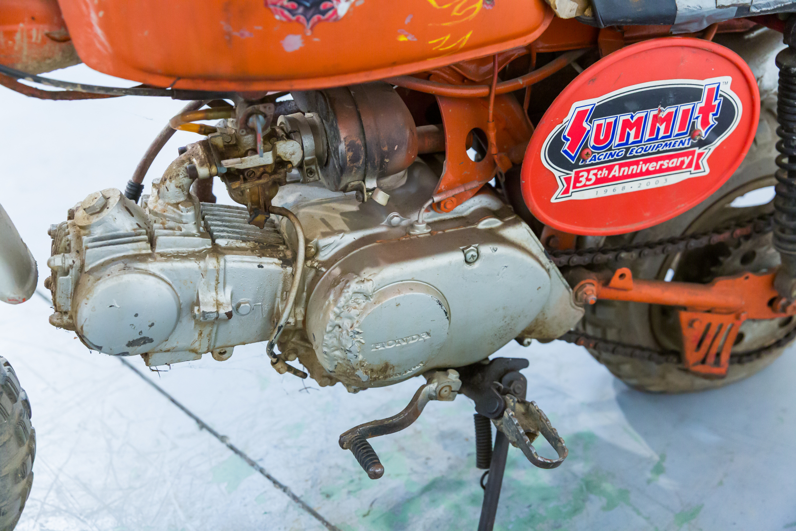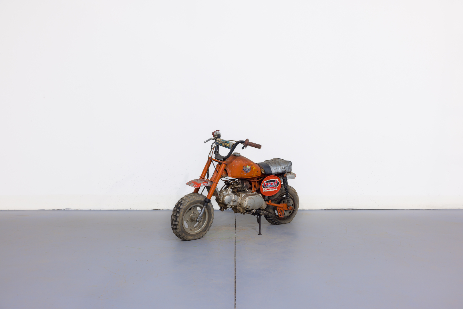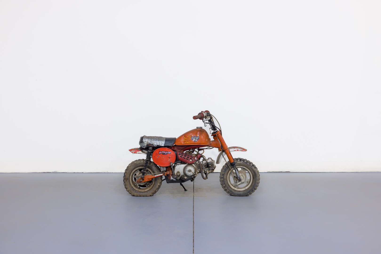 Primo modello di minimoto progettato e costruito dalla Honda, il Monkey 50, presentato negli anni’60, fu oggetto di svariati aggiornamenti, mantenendo sempre come base il motore monocilindrico a 4 tempi con distribuzione monoalbero a camme in testa con cambio prima a 3 e poi successivamente a 4 velocità con frizione centrifuga automatica. Originariamente previsto per essere agevolmente trasportato nel baule dell’auto o come comodo tender è diventato un autentico oggetto di culto. Conservato, privo di alcuni componenti, adatto uso ricambi.