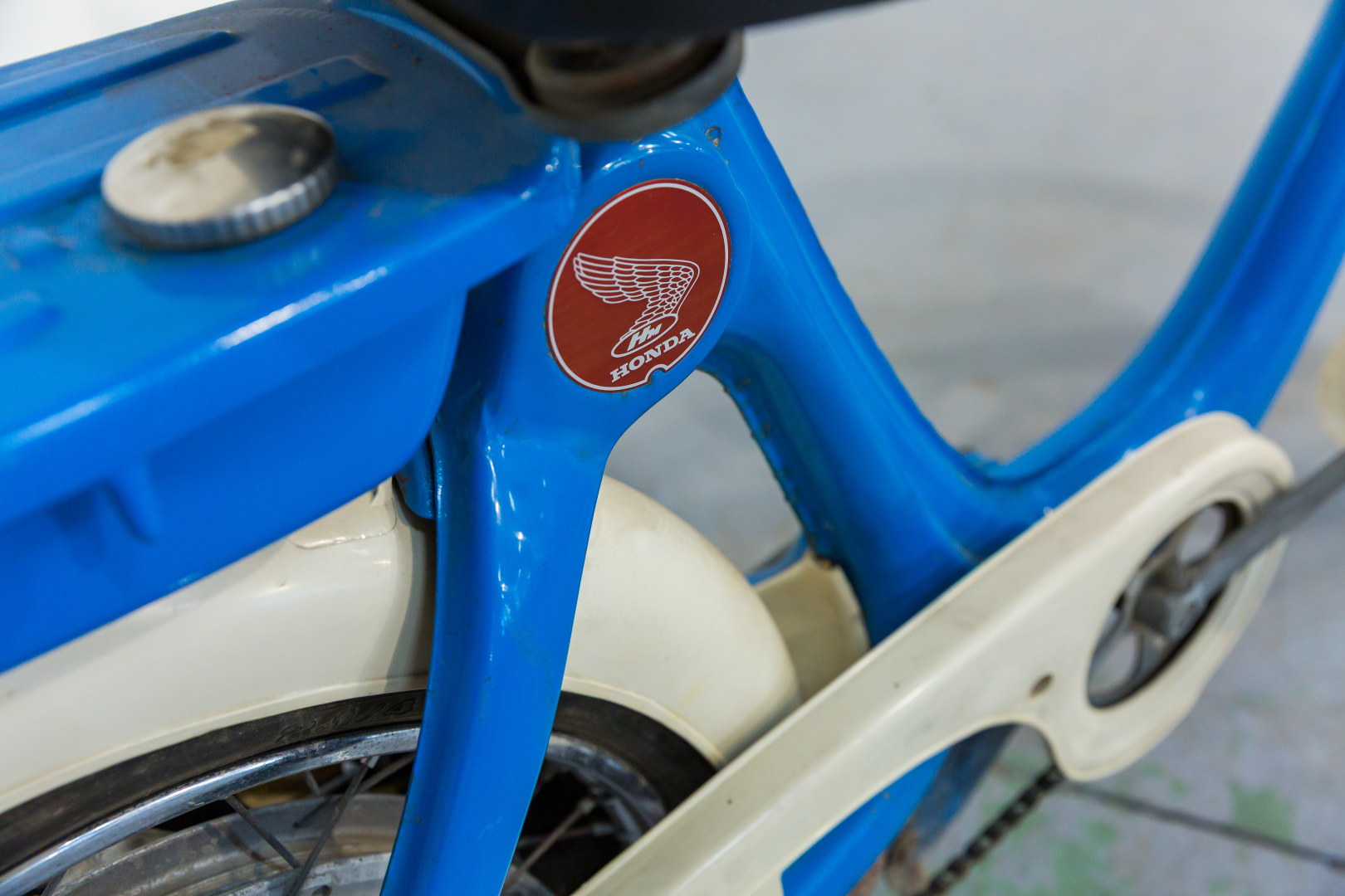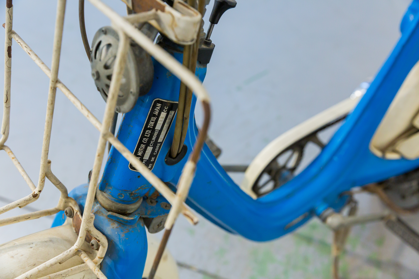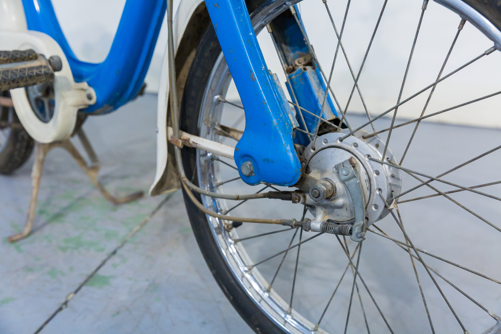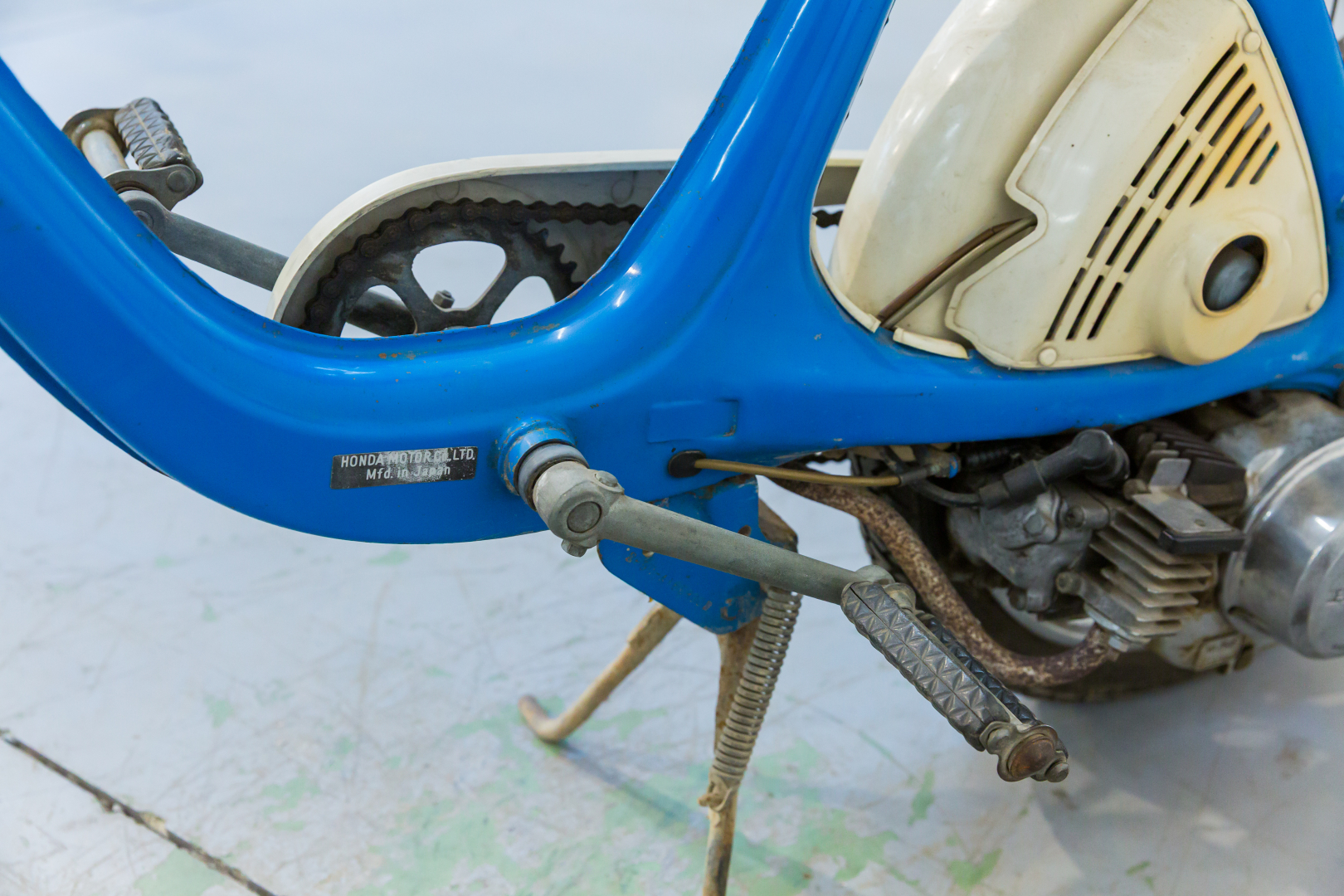 Presentato nel 1966, il ciclomotore della Honda denominato P50, un modello molto originale, con il motore, un raffinato monocilindrico a 4 tempi di 50cc con distribuzione monoalbero a camme in testa ed una potenza di 1,2CV, collocato a ridosso del mozzo ruota posteriore ed un telaio in lamiera stampata, sospensione anteriore con forcella a biscottini oscillanti e freni a tamburo. Completo, conservato in buone condizioni. Si consiglia un controllo generale prima dell’utilizzo.