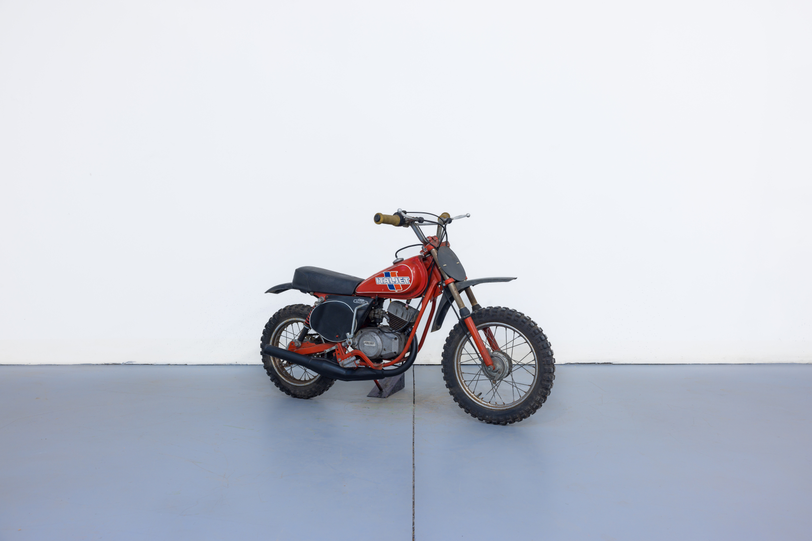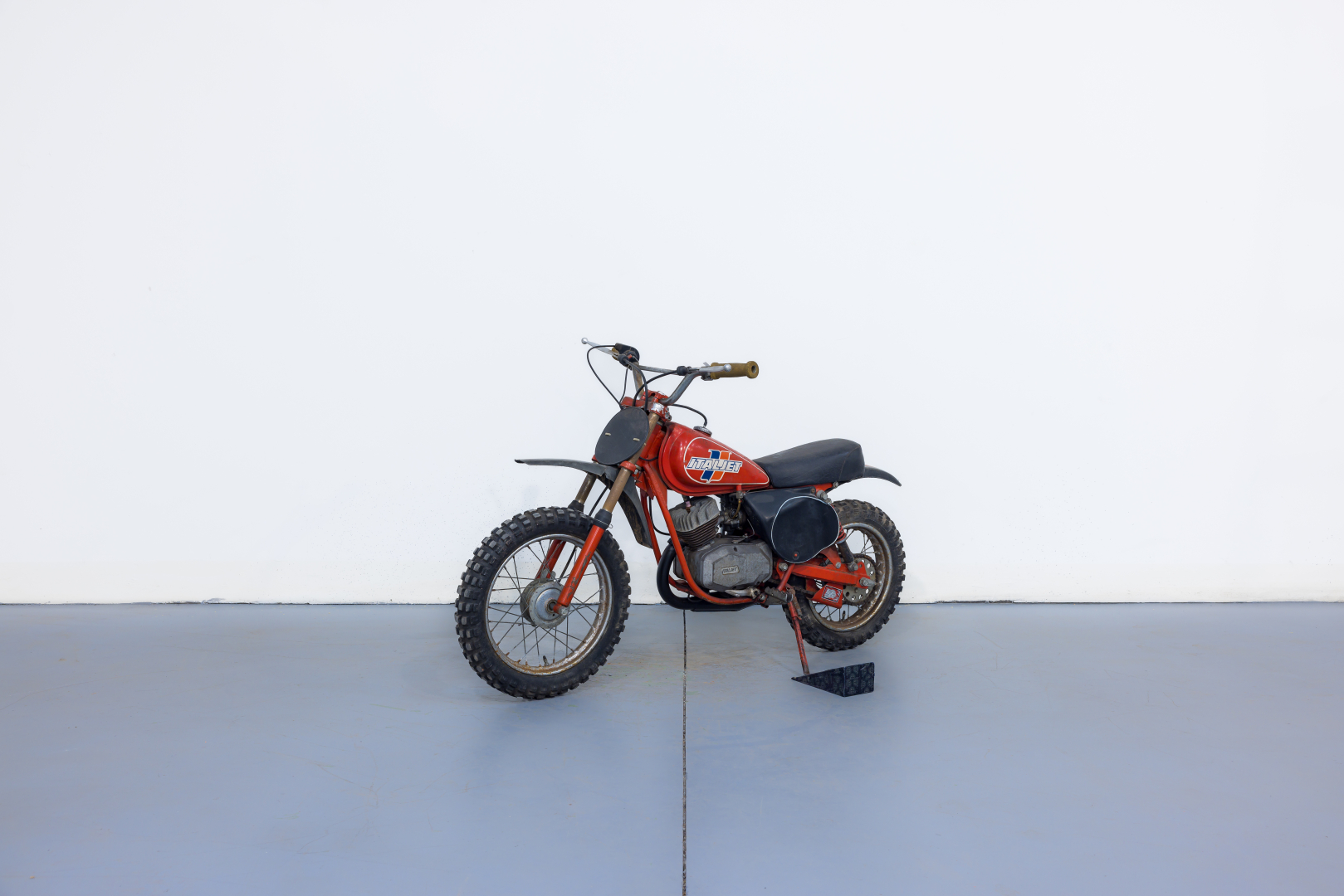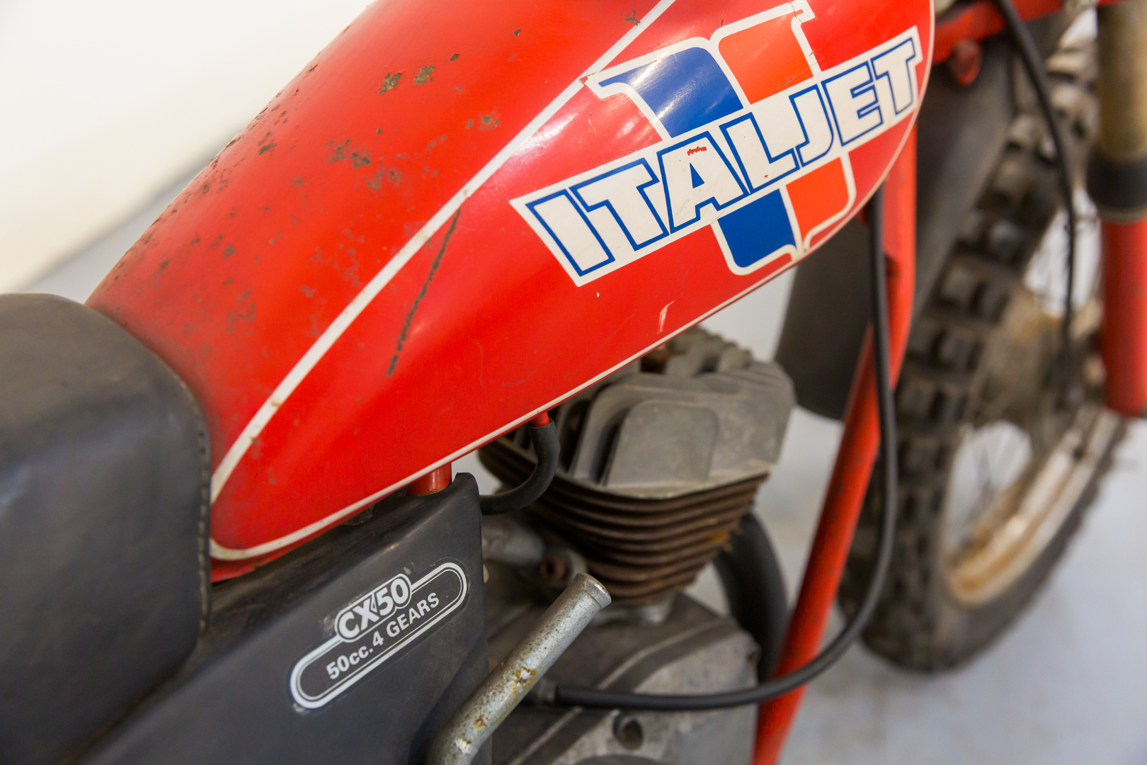 Minimoto da cross proposta dalla bolognese Italjet, dotata di motore monocilindrico a 2 tempi da 49cc con cambio a 4 velocità, telaio a doppia culla in acciaio, forcella teleidraulica anteriore e posteriormente forcellone oscillante con coppia di ammortizzatori teleidraulici, ruota anteriore da 14”, posteriore da 12”. Conservata, completa, in buono stato. Si consiglia un controllo generale prima dell’utilizzo.