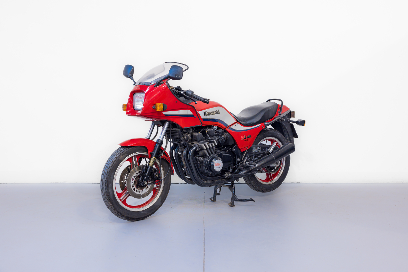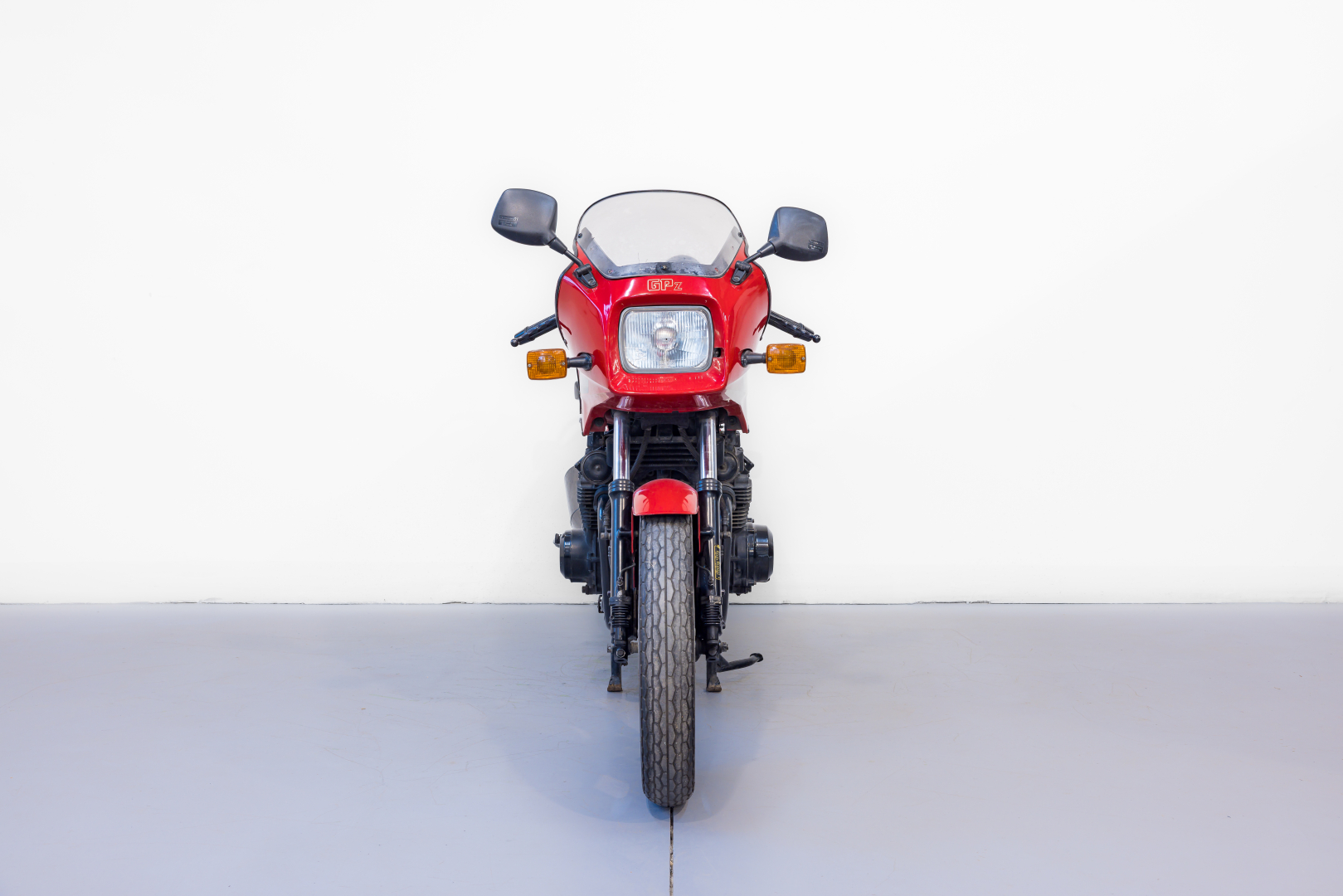 Moto sportiva presentata dalla Kawasaki nel 1982, raccoglieva l’eredità della fortunata serie Z, la GPZ si presenta con notevoli miglioramenti a partire dal motore quattro cilindri bialbero con due valvole per cilindro, camme ridisegnate e una batteria di carburatori Mikuni da 34 mm che ne aumentarono notevolmente le prestazioni. Per la parte ciclistica il classico robusto telaio a doppia culla in tubi d’acciaio viene coadiuvato da una forcella teleidraulica con sistema anti affondamento e al posteriore un mono ammortizzatore con il sistema di articolazioni per rendere l’azione progressiva della sospensione brevettato e denominato Uni-Track. Equipaggiata di una semi carena che rende la linea filante. Conservata, buono stato. Scarichi da sostituire. Si consiglia un controllo generale prima dell’utilizzo.