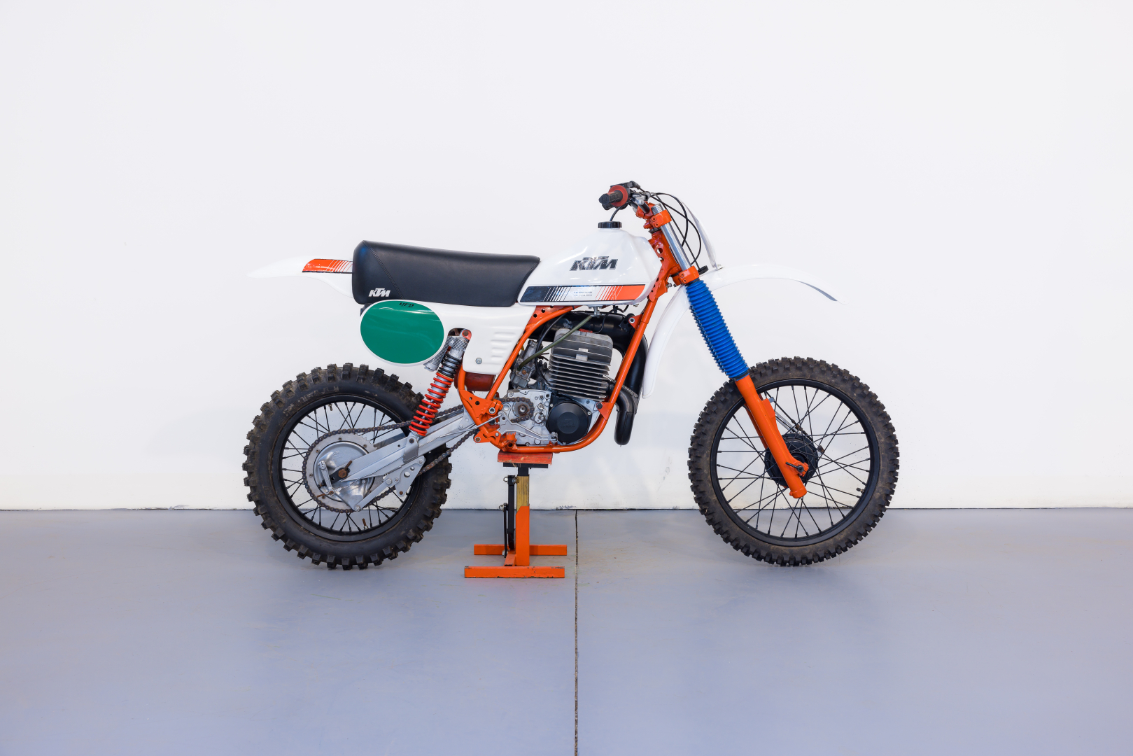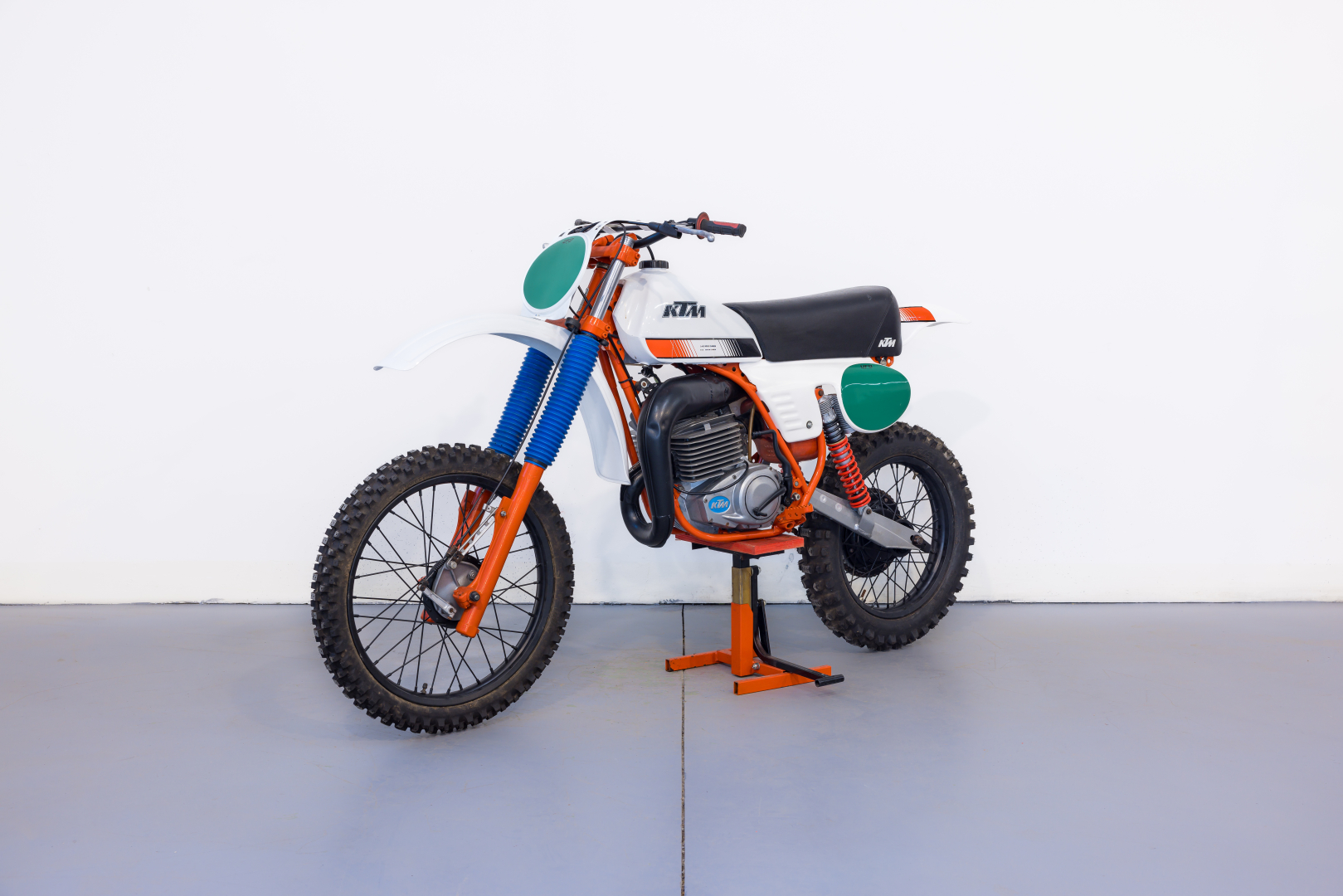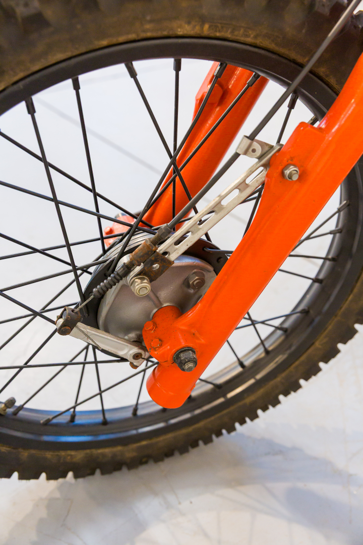 Moto da cross prodotta dalla KTM, famoso marchio austriaco, il modello proposto deriva dal modello da Enduro denominato GS, Motore monocilindrico a 2 tempi, raffreddato ad aria, cambio a 6 rapporti. Ciclistica al top, telaio in acciaio al Cromo Molibdeno, forcella Marzocchi, sospensione posteriore a forcellone oscillante con ammortizzatori a gas Marzocchi regolabili. Completa, in ottime condizioni. Si consiglia un controllo generale prima dell’utilizzo.
