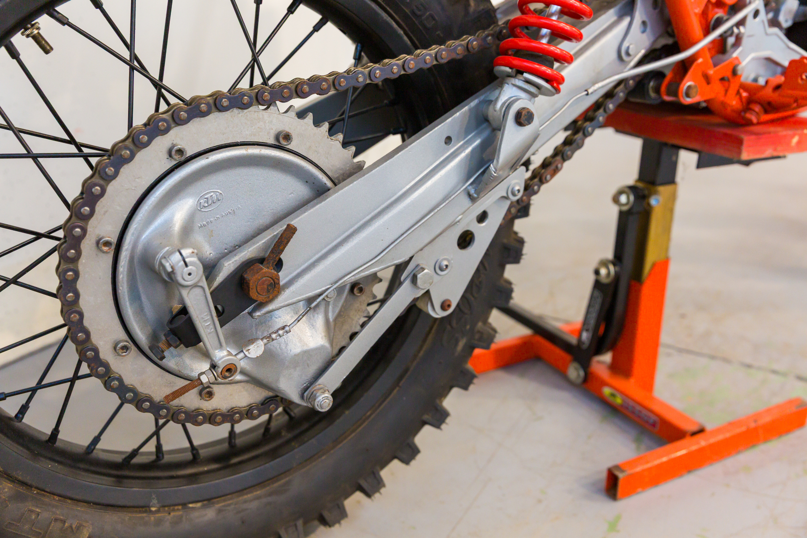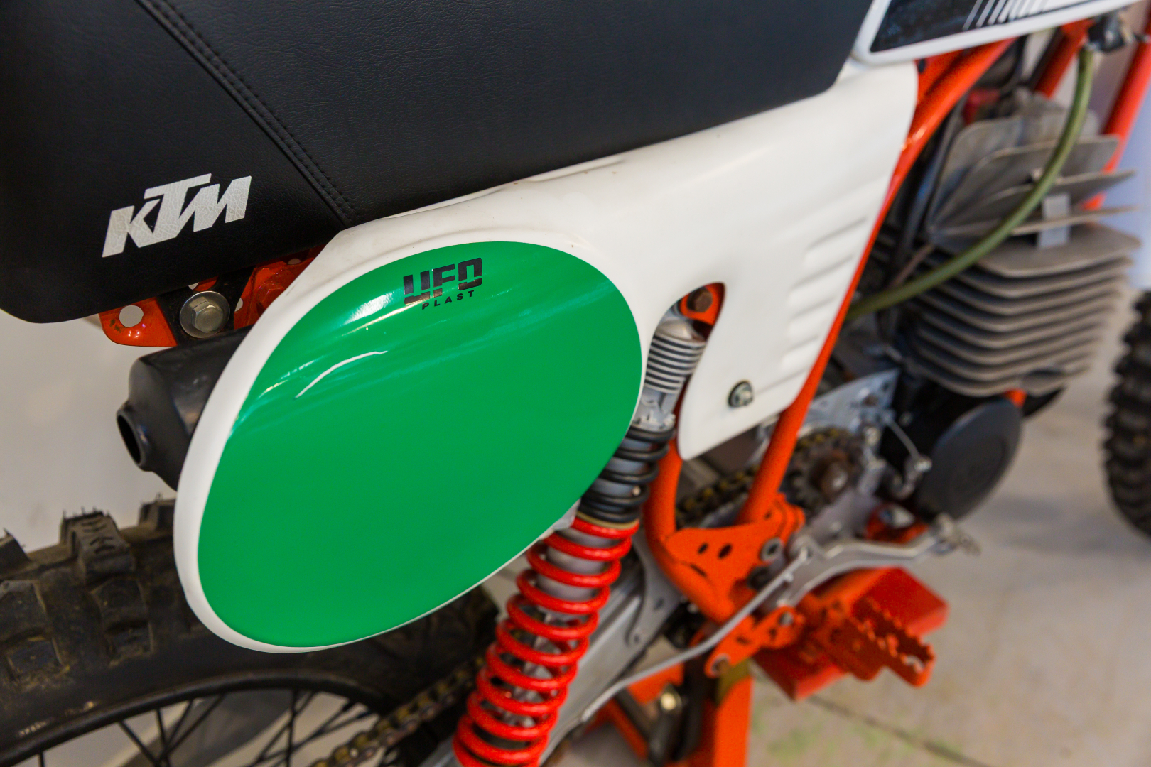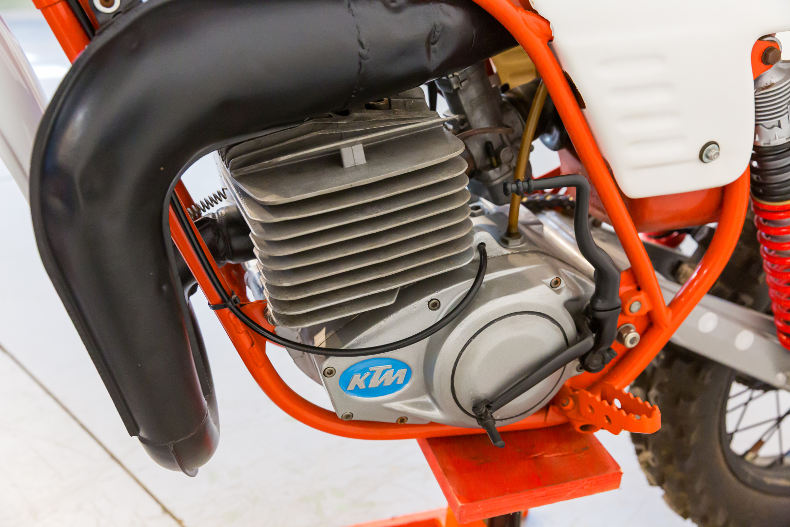 Moto da cross prodotta dalla KTM, famoso marchio austriaco, il modello proposto deriva dal modello da Enduro denominato GS, Motore monocilindrico a 2 tempi, raffreddato ad aria, cambio a 6 rapporti. Ciclistica al top, telaio in acciaio al Cromo Molibdeno, forcella Marzocchi, sospensione posteriore a forcellone oscillante con ammortizzatori a gas Marzocchi regolabili. Completa, in ottime condizioni. Si consiglia un controllo generale prima dell’utilizzo.