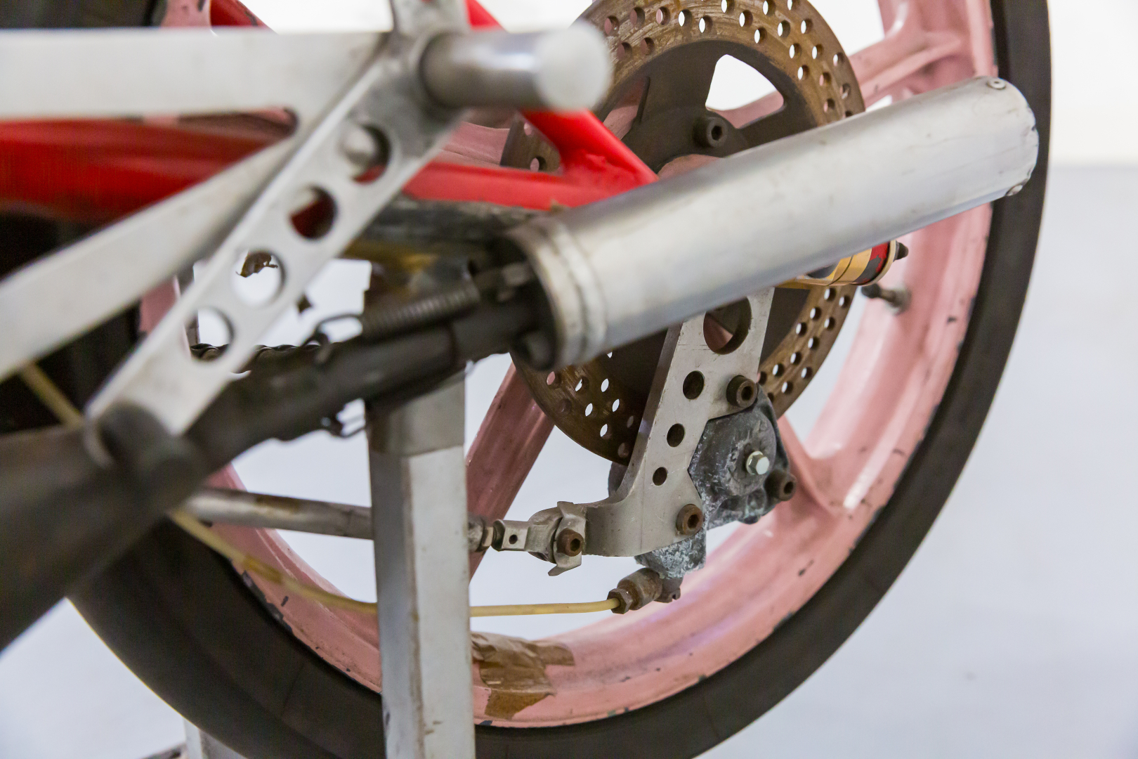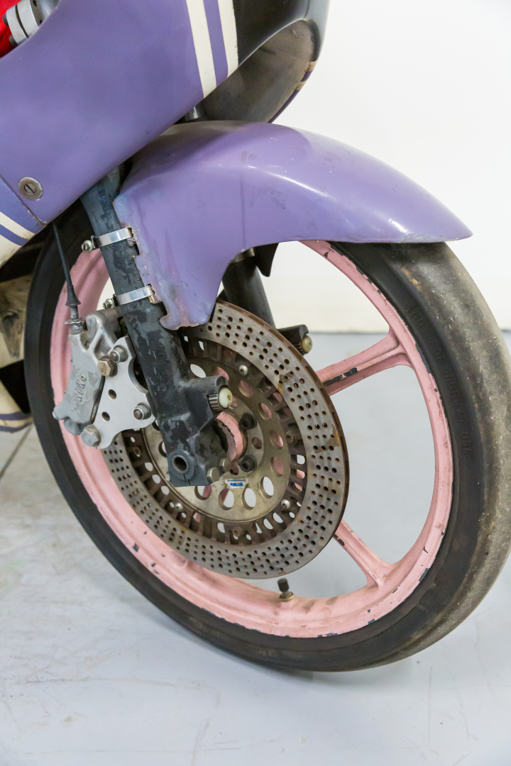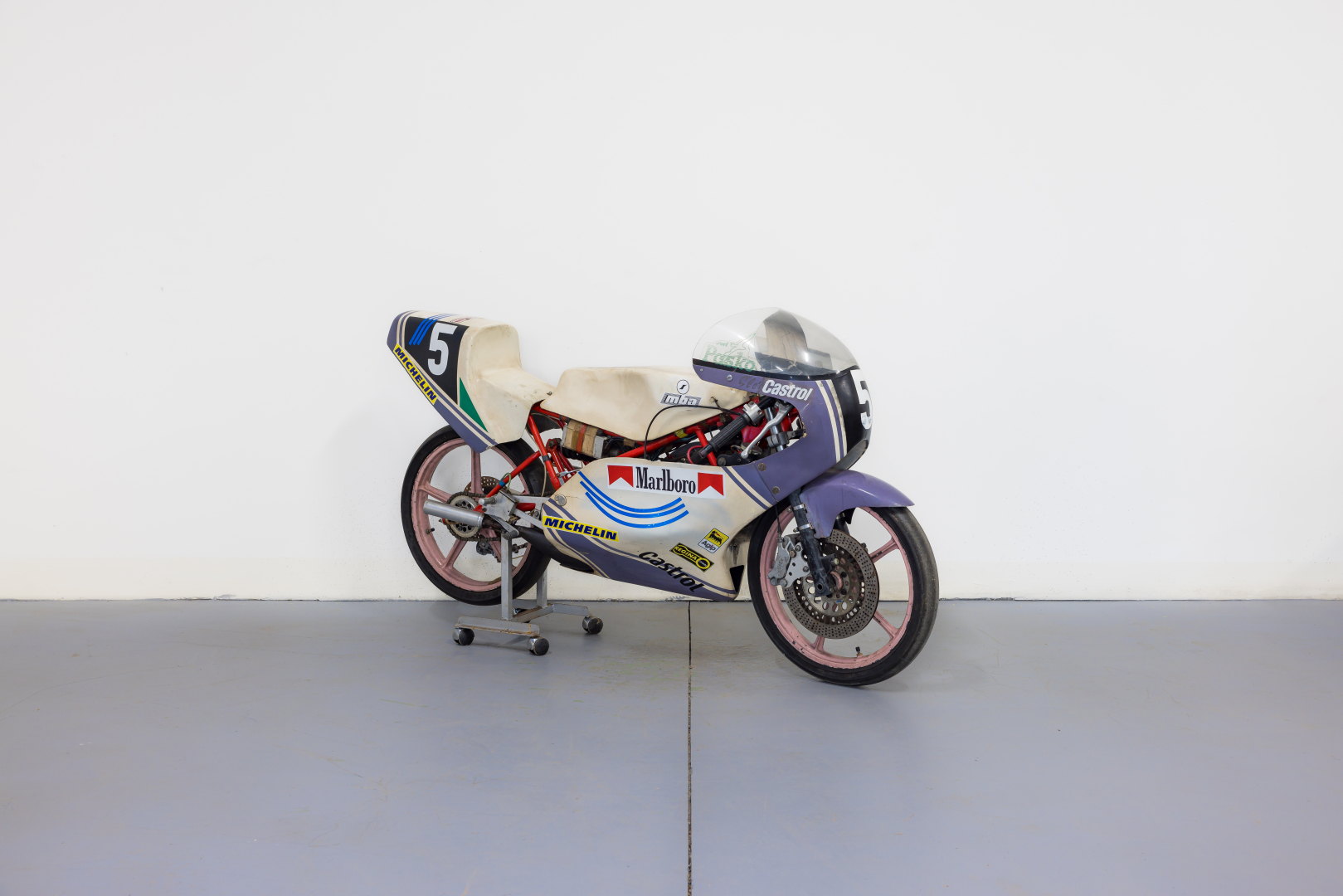 Alla fine del 1979 Giancarlo Morbidelli, un abile industriale pesarese specializzato nella costruzione di macchine per la lavorazione del legno con la grande passione per le moto da corsa, che aveva già da qualche anno avviato un proprio marchio, con il proprio cognome, costruendo motoleggere da 50 e 125cc vittoriose in molte competizioni di Velocità, unisce le proprie competenze con quelle dalla Benelli Armi dando vita alla MBA (Morbidelli Benelli Armi). Questo sodalizio darà al marchio ben 8 titoli iridati, 14 titoli nazionali e 7 successi continentali. Il modello più rappresentativo e vittorioso era equipaggiato da un motore bicilindrico a 2 tempi con ammissione a disco rotante e cambio a 6 velocità inserito in un telaio a traliccio in acciaio abbinati a componentistica della miglior qualità disponibile per l’epoca. Il modello proposto è un VR 125 Cantilever del 1985 con il monoammortizzatore posteriore, è appartenuto al Pilota Anton Slegl che l’ha condotto con successo in competizioni del Campionato Nazionale Ceco; è stato aggiornato con componentistica non originale quali i cerchioni ed i freni, che ora sono un monodisco anteriore autoventilato di origine Yamaha come il resto dell’impianto. Conservata, completa, in discrete condizioni. Si consiglia un controllo generale prima dell’utilizzo.
