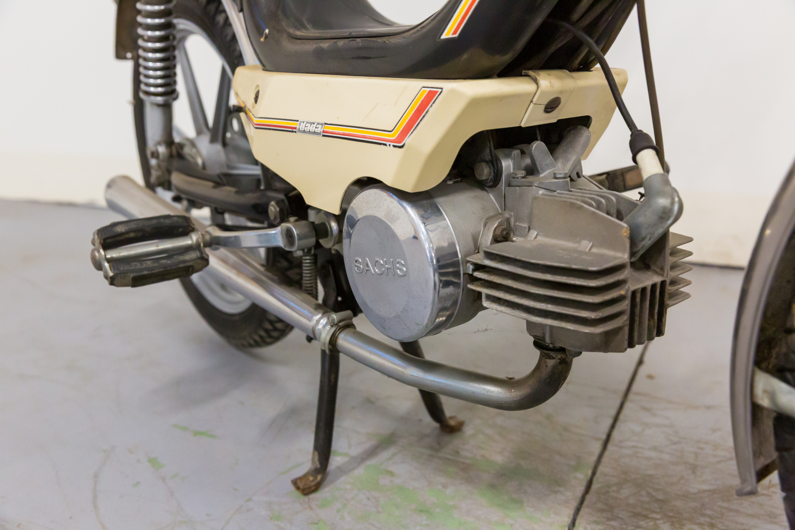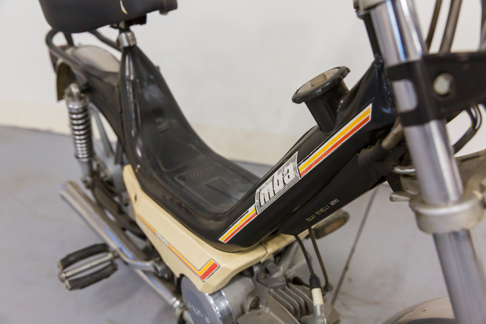 A fine 1977 Giancarlo Morbidelli lascia la MBA anche per il fatto che i due Soci della Benelli Armi sono intenzionati a produrre e commercializzare dei ciclomotori con questo marchio. Il nome rimarrà MBA ma sarà, d’ora in poi, l’acronimo di Moto Benelli Armi. I ciclomotori MBA saranno dotati di telaio tubolare monotrave con serbatoio carburante incorporato e mosso da un motore Sachs monocilindrico a 2 tempi da 49cc con cilindro orizzontale e trasmissione automatica a frizione centrifuga. Completo, in buone condizioni. Si consiglia un controllo generale prima dell’utilizzo.