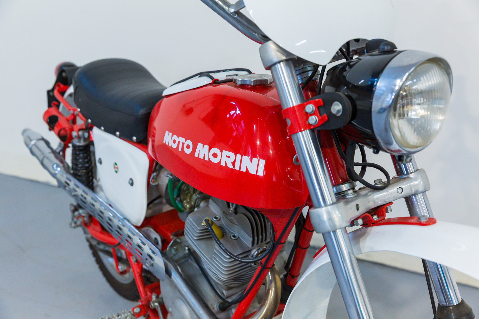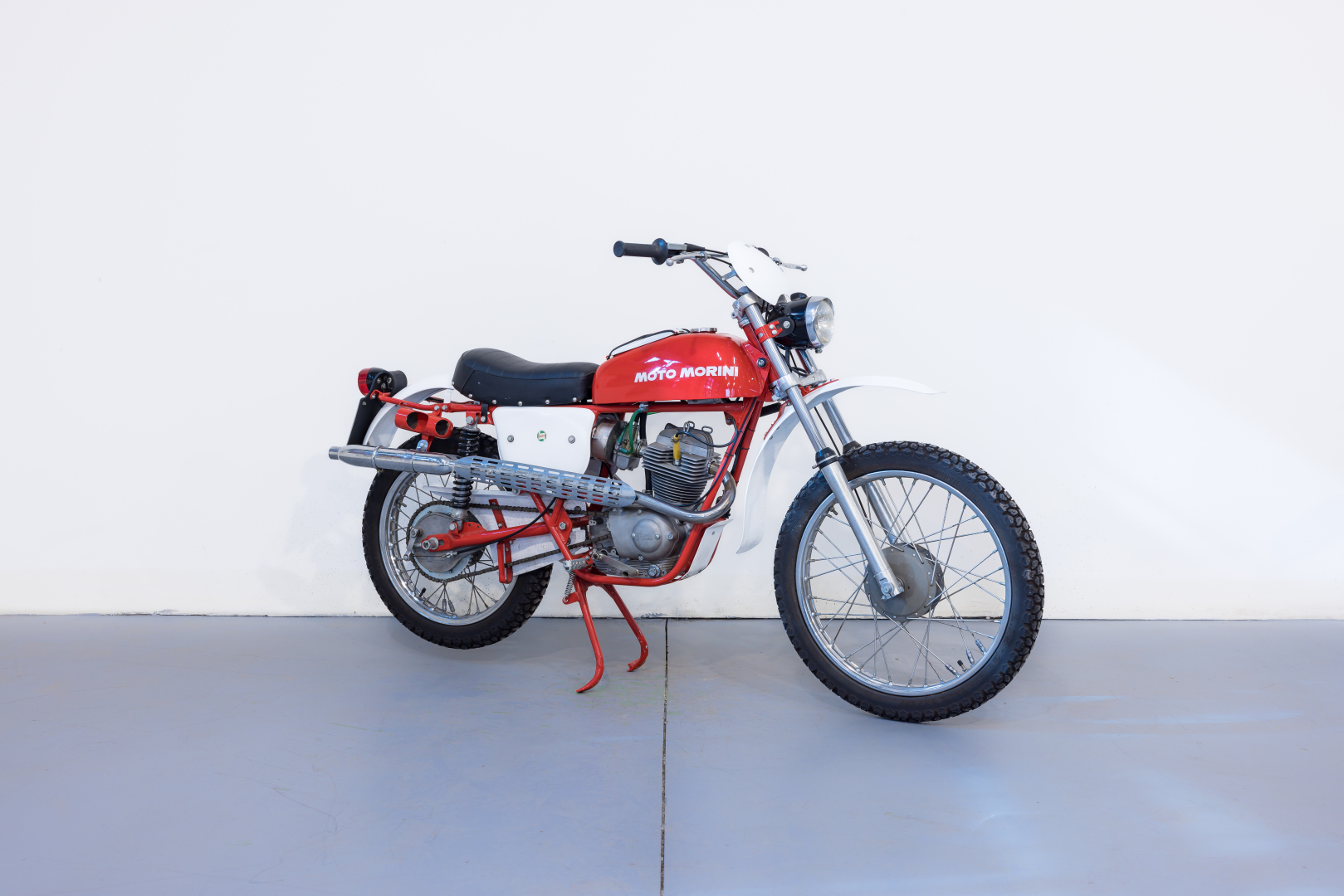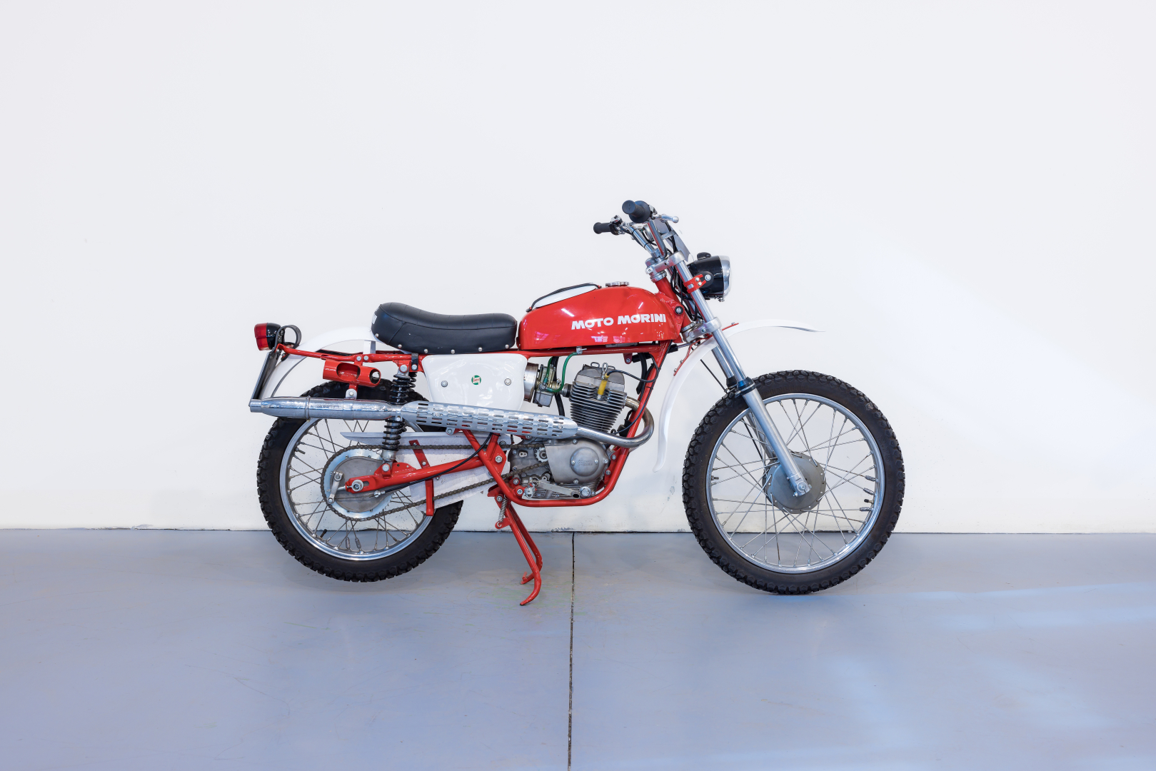 Dopo le prime motociclette a 2 tempi la produzione della Moto Morini si orienta ai propulsori a 4 tempi ed a metà degli anni ‘50 viene presentato il primo modello a 4 tempi. Faranno seguito negli anni altri modelli di successo quali il Corsaro 125. Il modello Country monta un motore monocilindrico a 4 tempi con distribuzione ad aste e bilancieri e cambio a 5 velocità. Telaio a doppia culla in tubi d’acciaio, sospensione anteriore con forcella teleidraulica e posteriore con forcellone oscillante e coppia di ammortizzatori idraulici, freni a tamburo, ruota anteriore da 19”, posteriore da 18”. Restaurata, equipaggiata con telaio Verlicchi e con diversi componenti aftermarket di elevata qualità, in ottime condizioni. Si consiglia un controllo generale prima dell’utilizzo.