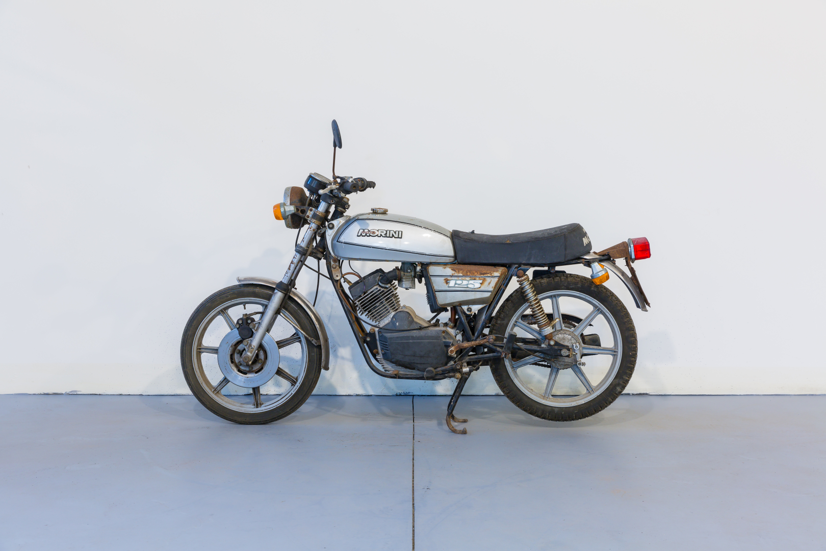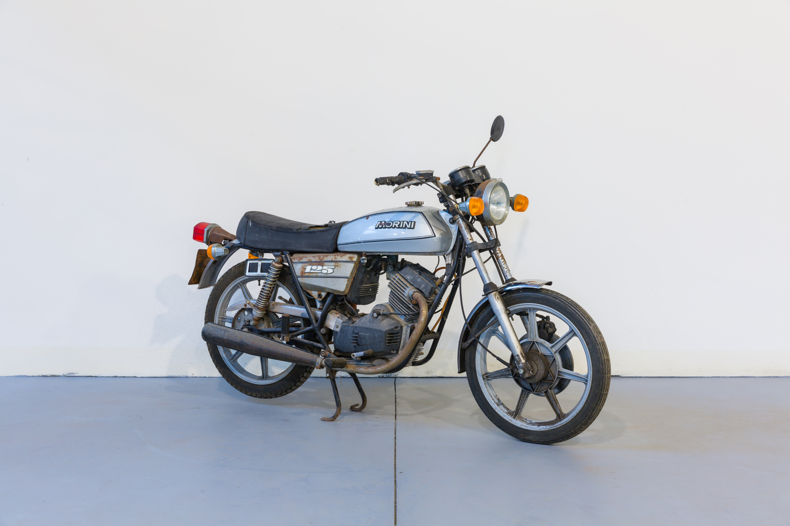 Negli anni ‘80 le motoleggere di 125cc figuravano tra le più vendute e la forte domanda, soprattutto per il mercato nazionale, spinse quasi tutti i costruttori a cimentarsi in questa cilindrata. La Moto Morini presentò il modello 125 H dotato di motore monocilindrico a 4 tempi con distribuzione ad aste e bilancieri derivato, non solo esteticamente, dal più celebre modello 350, accreditato per una discreta potenza di 13,6 CV. Telaio a doppia culla in tubi d’acciaio, ruote da 18” con cerchi in lega leggera, freno anteriore a disco e posteriore a tamburo. Condizioni discrete, adatta uso ricambi.