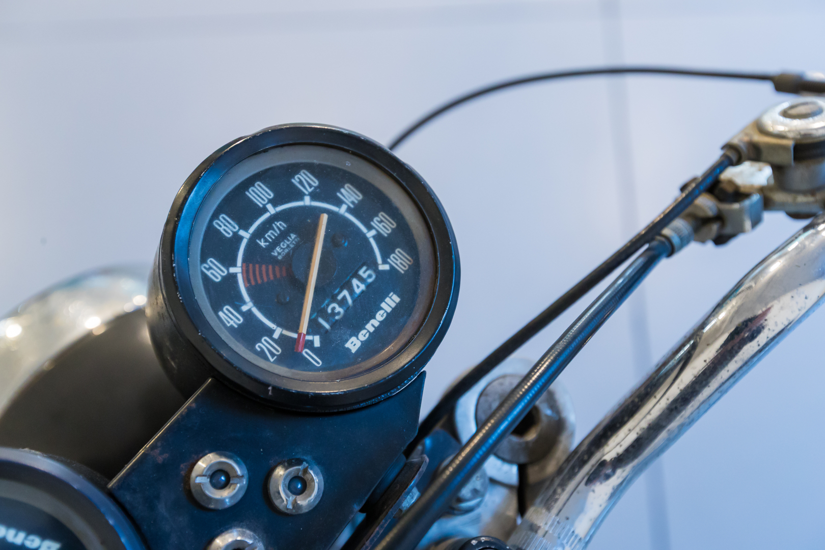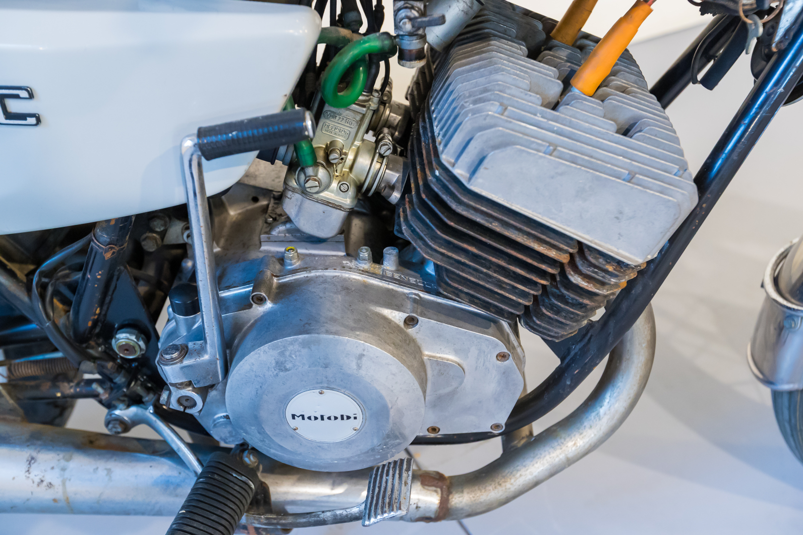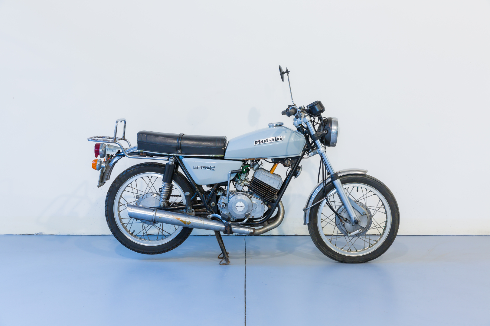 Presentata nel 1972 la Motobi 250 2 C veniva commercializzata anche con il marchio Benelli in quanto entrambe le aziende erano parte del Gruppo De Tomaso. Motore bicilindrico a 2 tempi con potenza di 26 CV ne facevano una moto decisamente brillante con prestazioni al vertice della categoria. Telaio a doppia culla in tubi d’acciaio, forcella teleidraulica e sospensione posteriore con forcellone oscillante e coppia di ammortizzatori idraulici. Esemplare appartenente alla prima serie, con freni a tamburo, conservato, completo, adatto a progetto di restauro o uso ricambi.