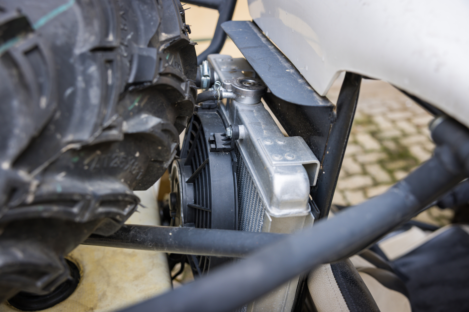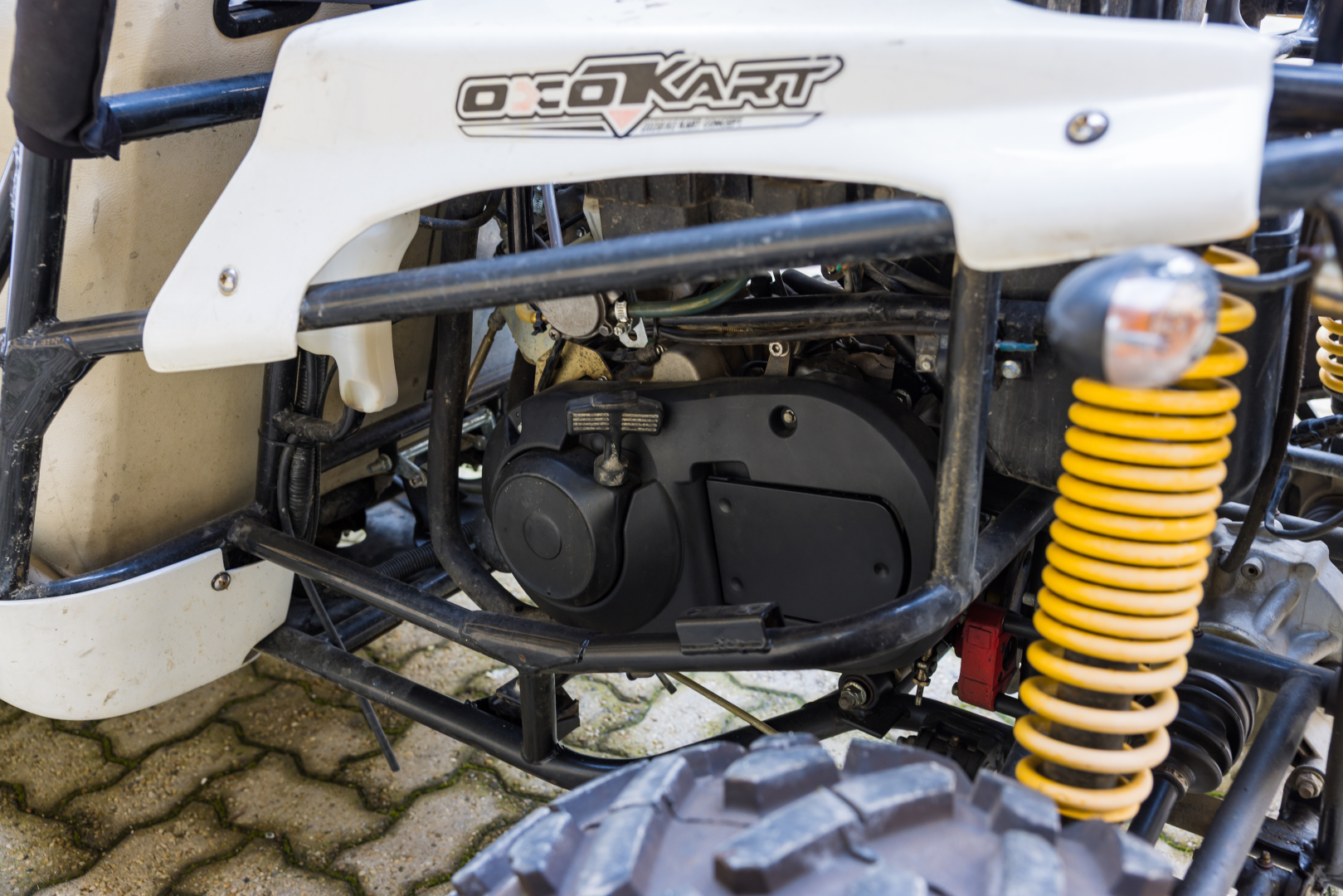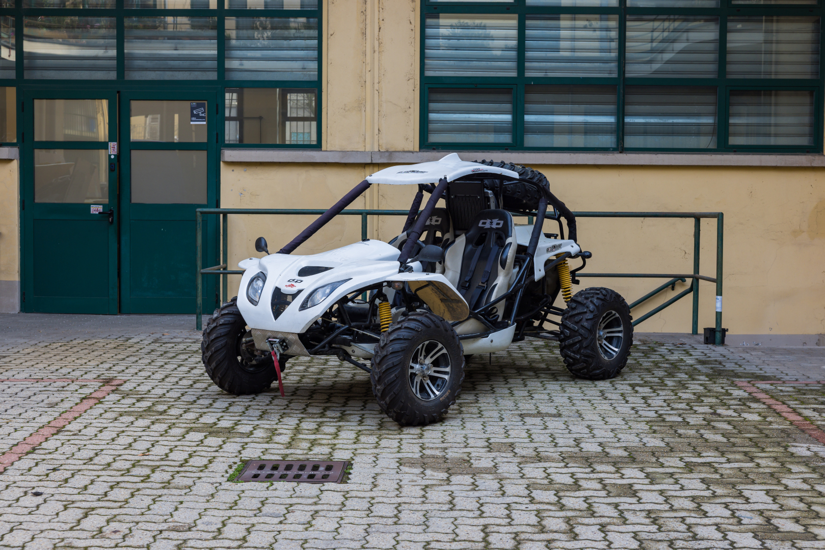 Buggy prodotto dall’azienda francese Oxobike, motore CFMoto, monocilindrico a 4 tempi da 493cc raffreddato a liquido, accreditato di una potenza di circa 20CV, trasmissione automatica con variatore, 4X2, telaio tubolare in acciaio, sospensione a ruote indipendenti, freni a disco da 220 mm, ruote da 12”. Equipaggiato con ruota di scorta montata sopra il tettuccio e verricello elettrico anteriore. Completo, buone condizioni. Si consiglia un controllo generale prima dell’utilizzo.